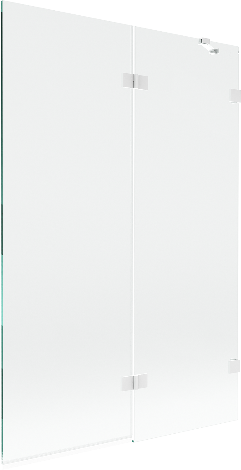 Paraván hecho de dos hojas con posibilidad de plegado. Esta solución permite ahorrar más espacio en el baño y permite el uso libre del espacio restante cuando no estamos usando la zona de baño.