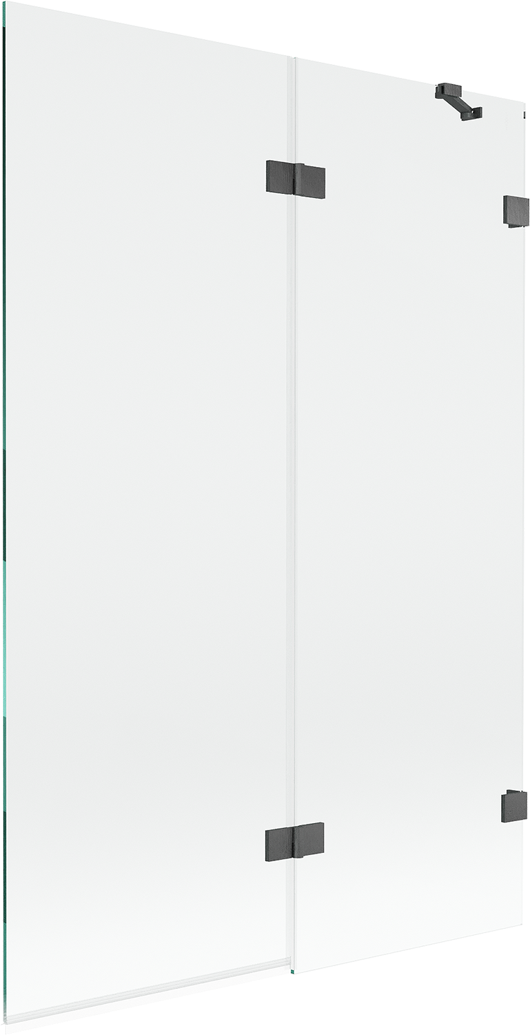 Paraván hecho de dos hojas con posibilidad de plegado. Esta solución permite ahorrar más espacio en el baño y permite el uso libre del espacio restante cuando no estamos usando la zona de baño.