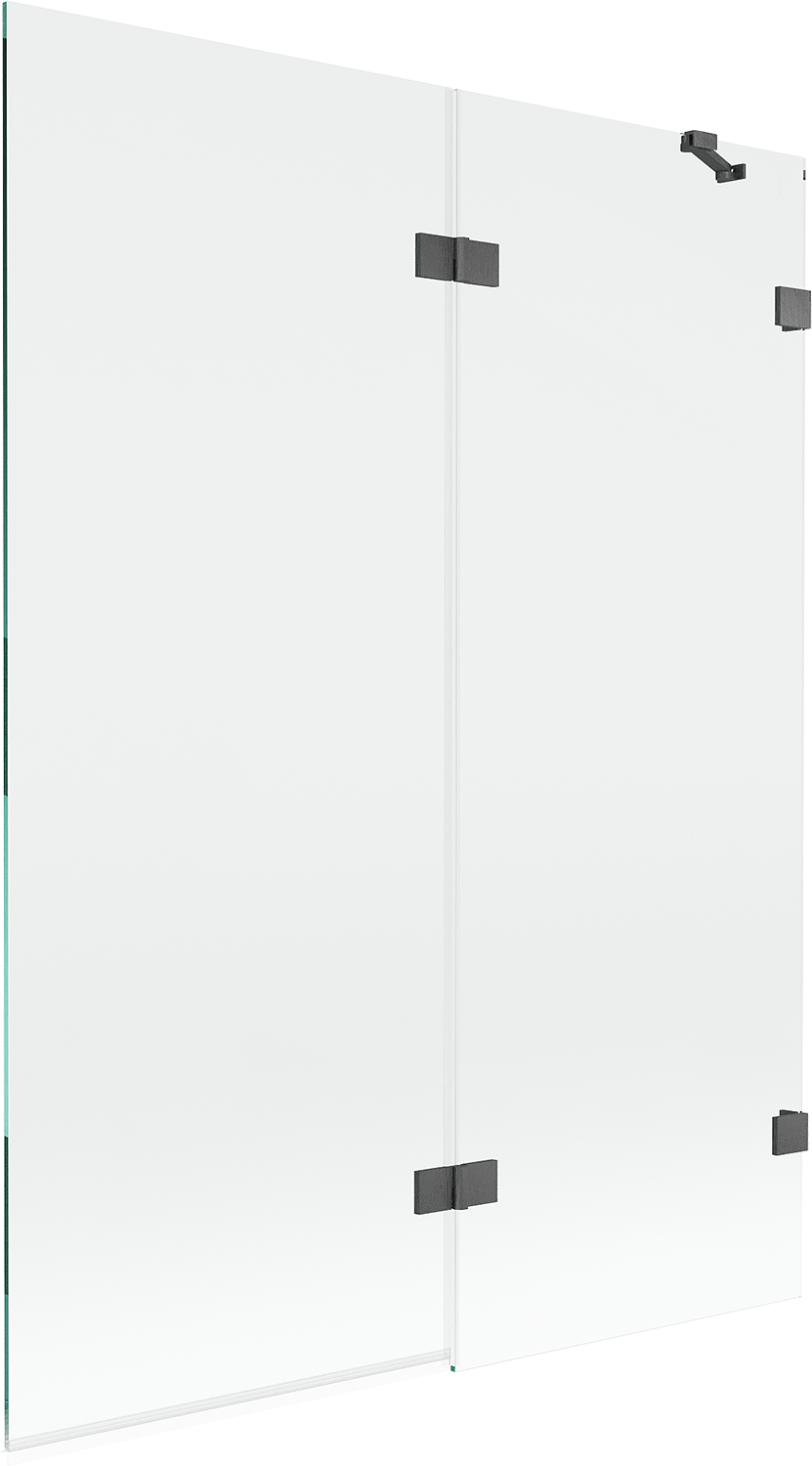 Paraván hecho de dos hojas con posibilidad de plegado. Esta solución permite ahorrar más espacio en el baño y permite el uso libre del espacio restante cuando no estamos usando la zona de baño.