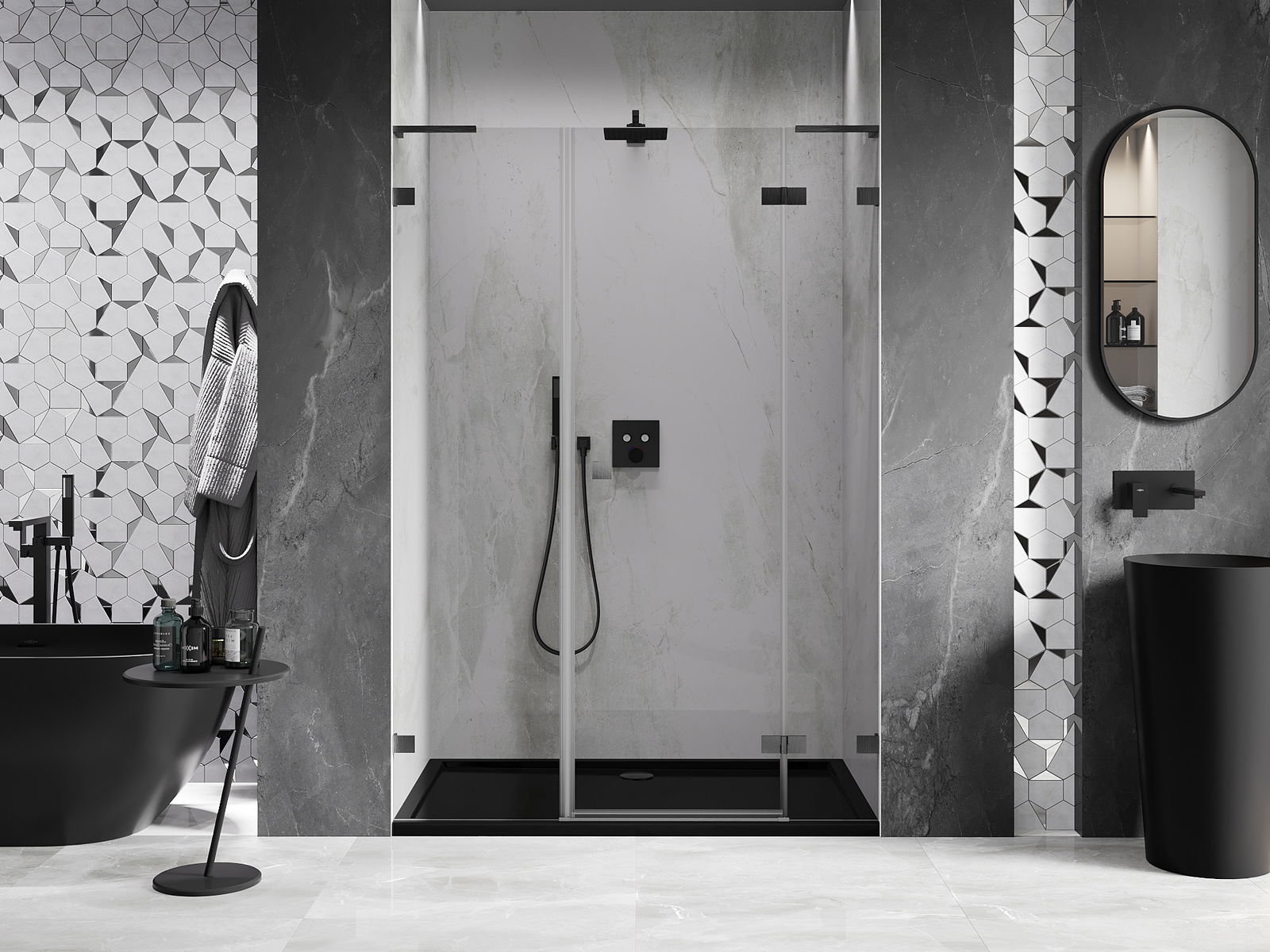 Las puertas abatibles permiten la máxima libertad durante su uso. Cuentan con bisagras sólidas hechas de un material duradero, que no presentan dificultades para mantener la limpieza y permiten un fácil acceso al interior de la cabina.