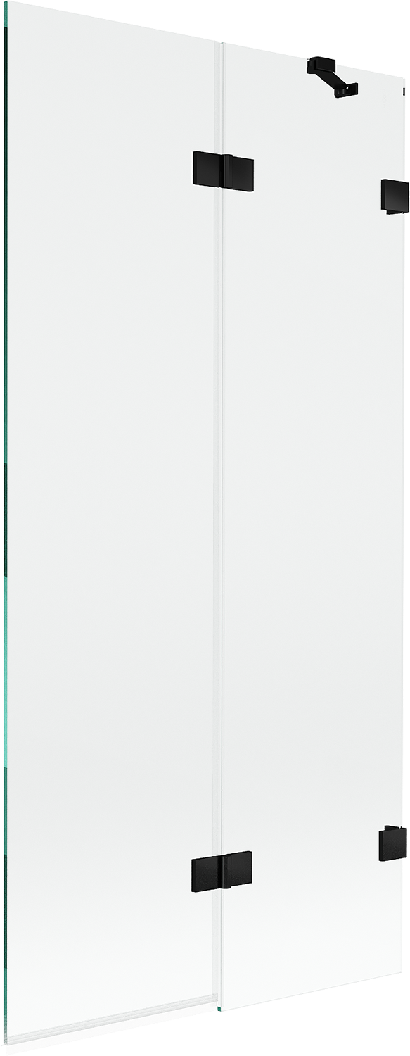 Paraván hecho de dos hojas con posibilidad de plegado. Esta solución permite ahorrar más espacio en el baño y permite el uso libre del espacio restante cuando no estamos usando la zona de baño.