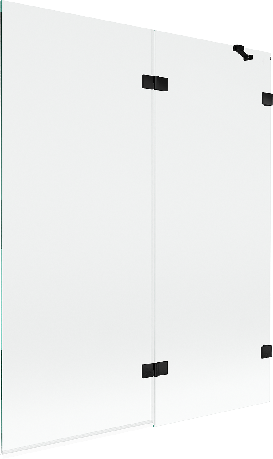 Paraván hecho de dos hojas con posibilidad de plegado. Esta solución permite ahorrar más espacio en el baño y permite el uso libre del espacio restante cuando no estamos usando la zona de baño.