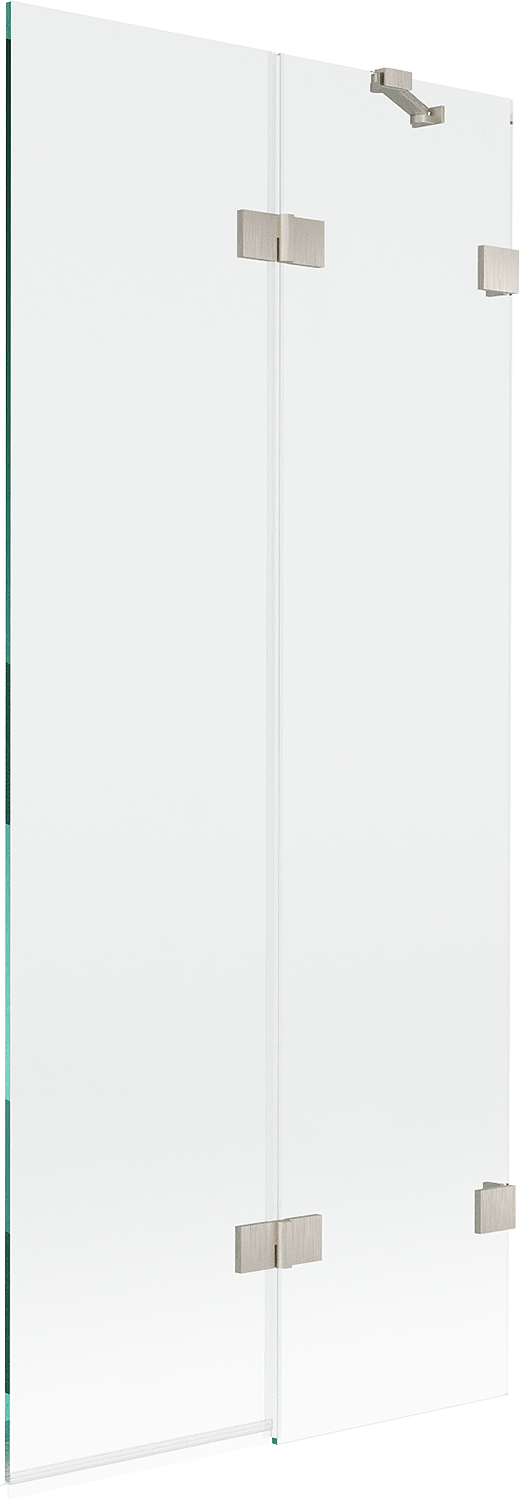 Paraván hecho de dos hojas con posibilidad de plegado. Esta solución permite ahorrar más espacio en el baño y permite el uso libre del espacio restante cuando no estamos usando la zona de baño.