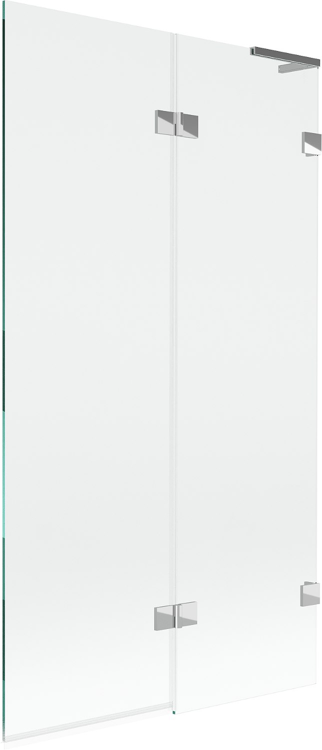 Paraván hecho de dos hojas con posibilidad de plegado. Esta solución permite ahorrar más espacio en el baño y permite el uso libre del espacio restante cuando no estamos usando la zona de baño.