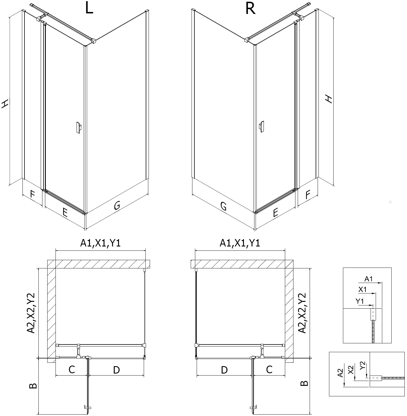 Las mamparas, puertas y paneles de ducha están adaptados de serie para su instalación en platos de ducha de dimensiones específicas. Estas dimensiones se indican en el nombre o la descripción del producto. No obstante, debe tenerse en cuenta que las dimensiones reales de los elementos pueden diferir ligeramente de los valores nominales. En caso de montaje directo sobre el suelo, se recomienda comprobar detenidamente las dimensiones exteriores y la disposición de los elementos de acuerdo con el dibujo técnico.
