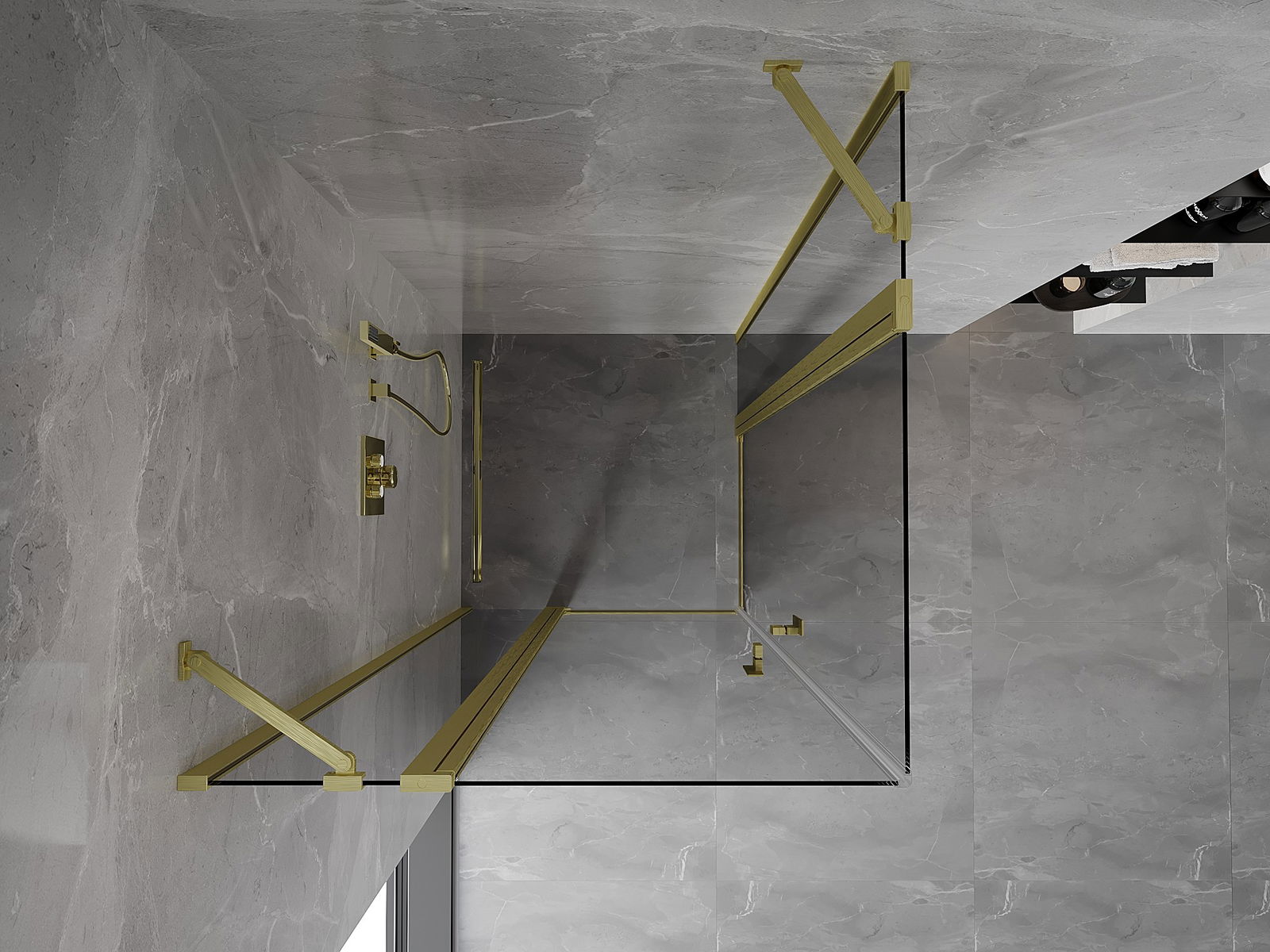 Mexen Mist Duo cabina de ducha abatible 100 x 100 cm, transparente, oro cepillado - 8A4-100-100-55-00