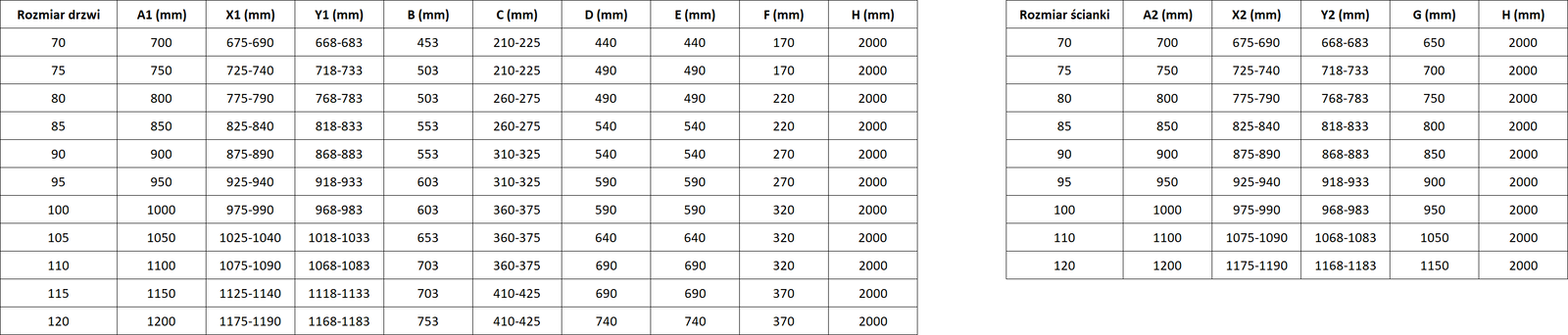 Tamaño: 115x100 cm (puerta 115 cm, pared 100 cm)