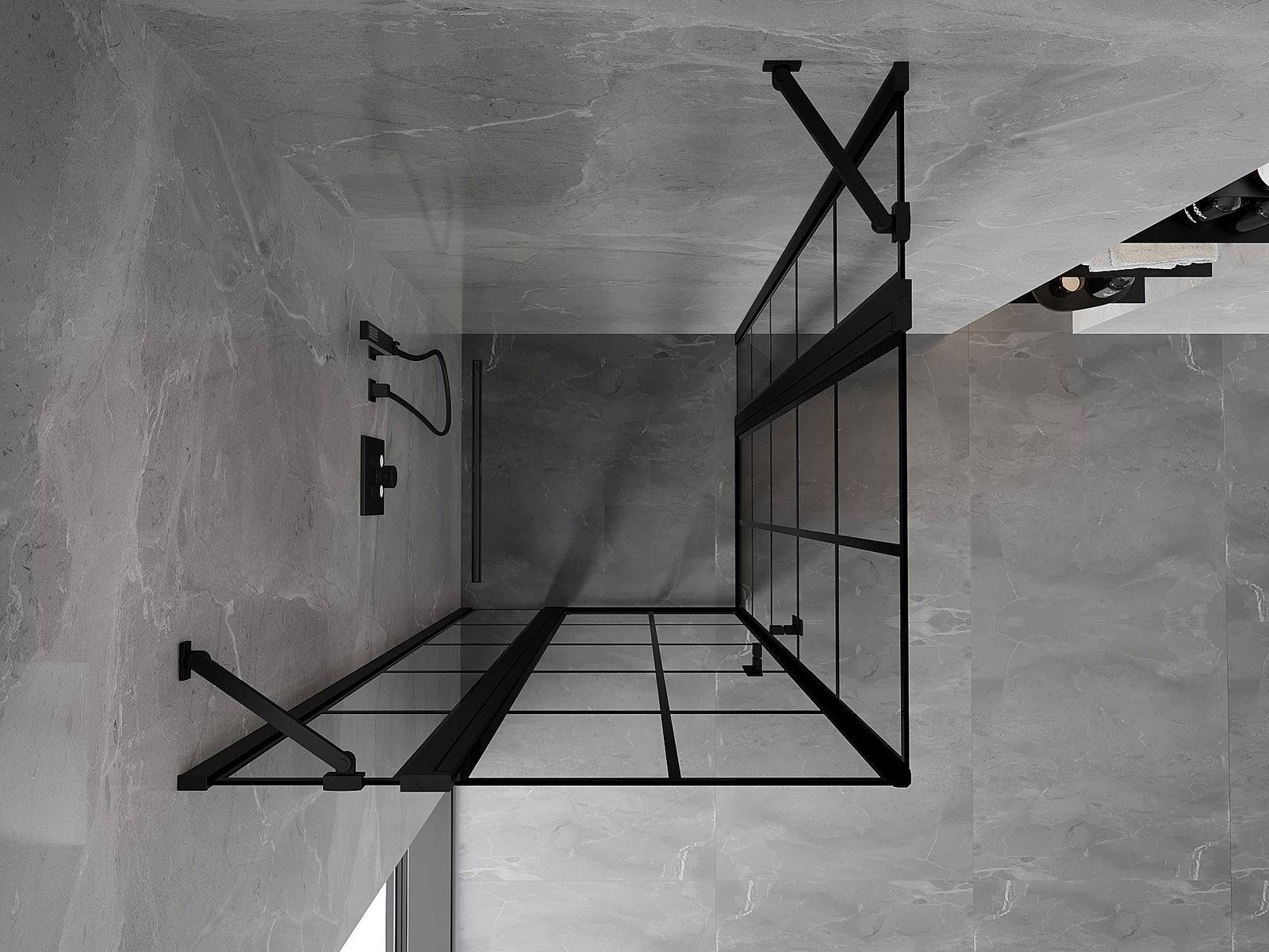 Mexen Mist Duo cabina de ducha abatible 80 x 80 cm, rejilla negra, negro - 8A4-080L-080P-70-77