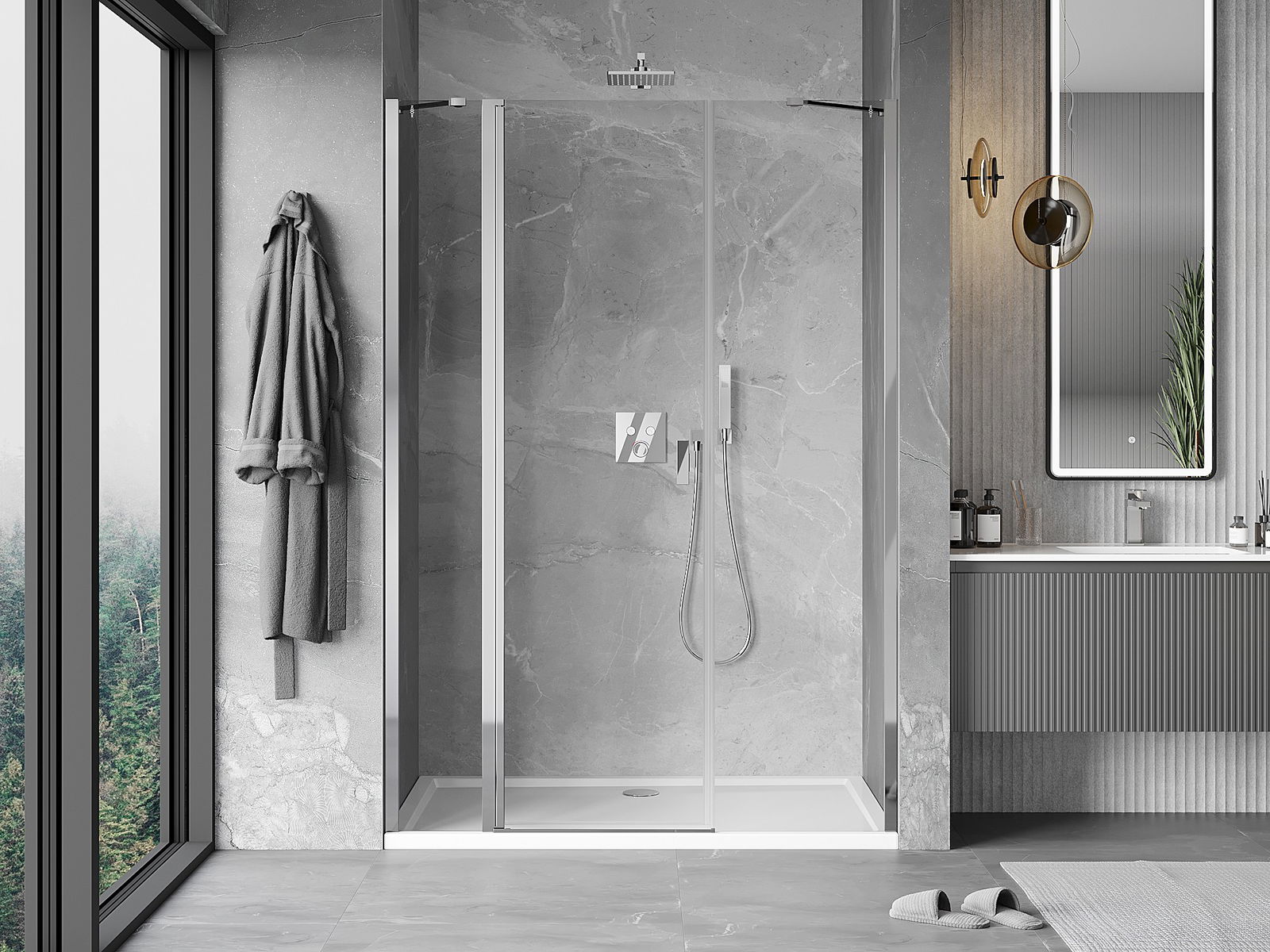 Mexen Mist puerta de ducha abatible 155 cm, transparente, cromo - 8A4-155-001-01-00