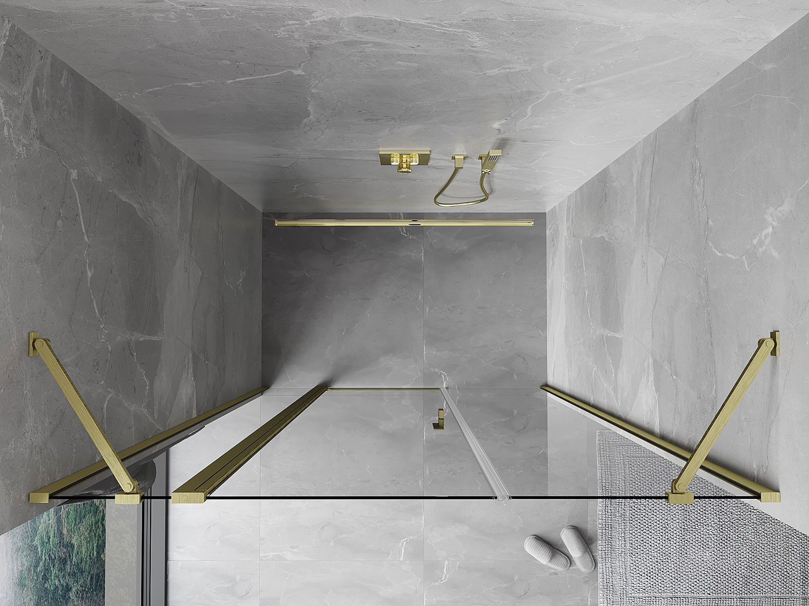 Mexen Mist puertas de ducha abatibles 125 cm, transparentes, dorado cepillado - 8A4-125-001-55-00