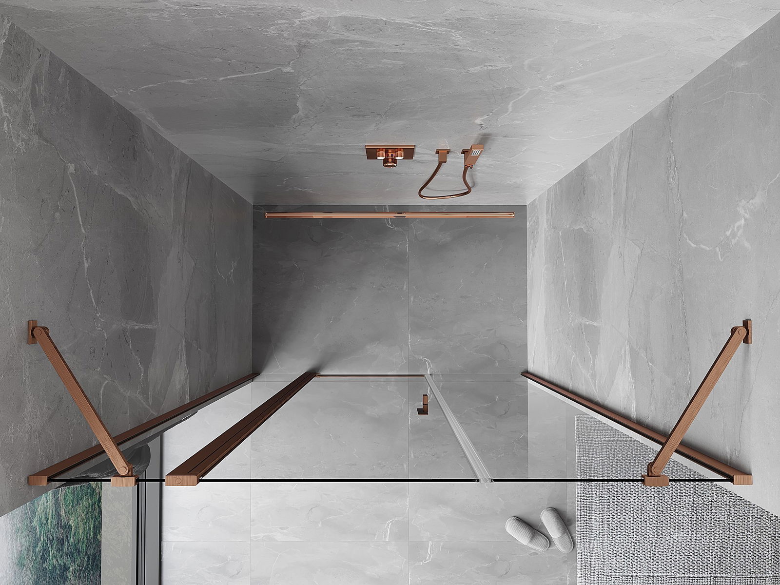 Mexen Mist puerta de ducha abatible 140 cm, transparente, cobre cepillado - 8A4-140-001-65-00
