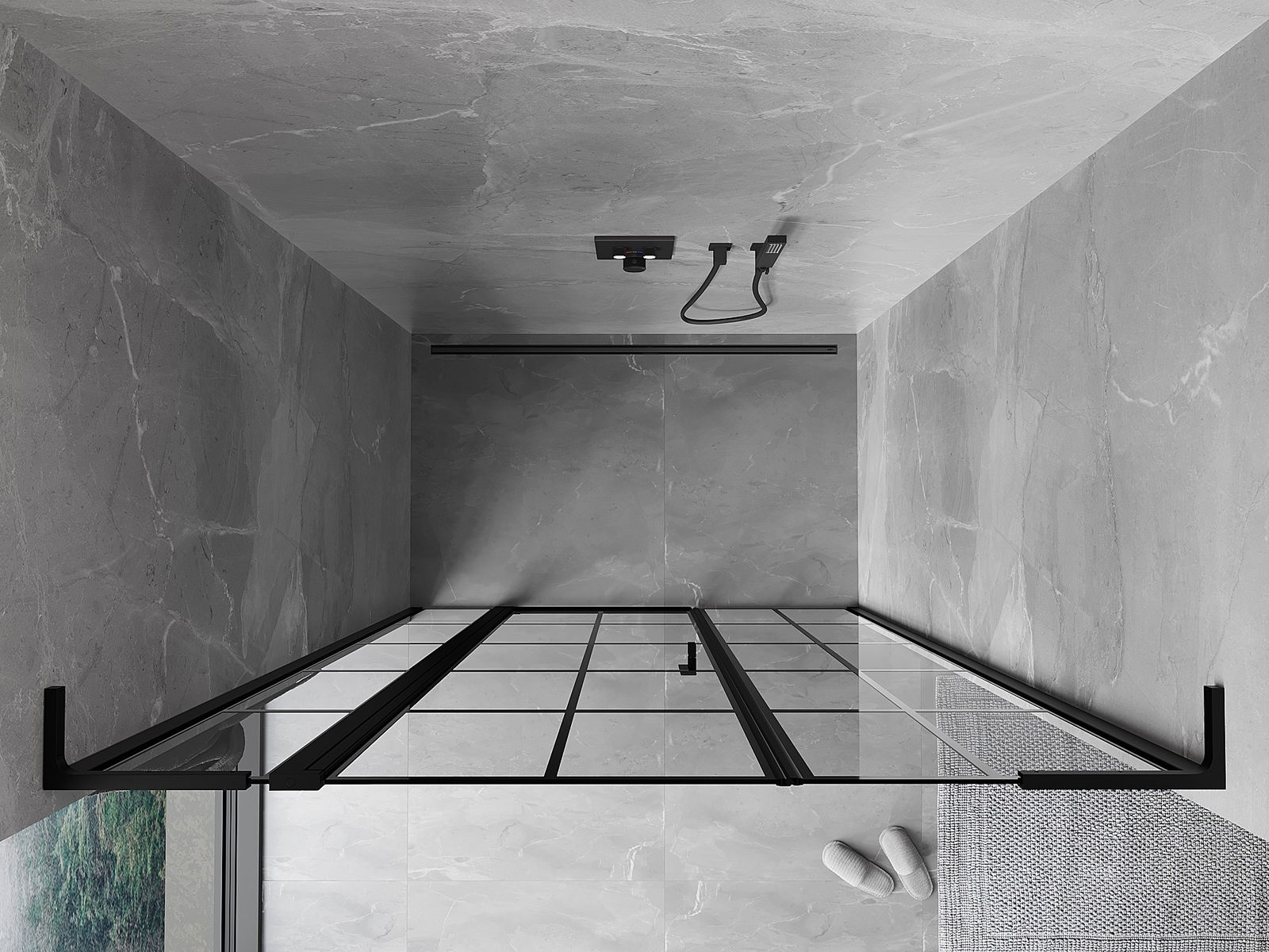 Mexen Mist L puerta de ducha abatible izquierda 150 cm, rejilla negra, negro - 8A4L-150-001-70-77-L