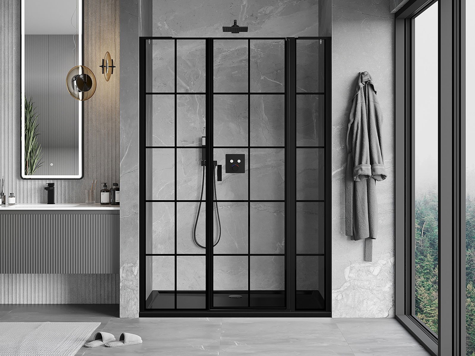 Mexen Mist L puerta de ducha abatible derecha 150 cm, rejilla negra, negro - 8A4L-150-001-70-77-P