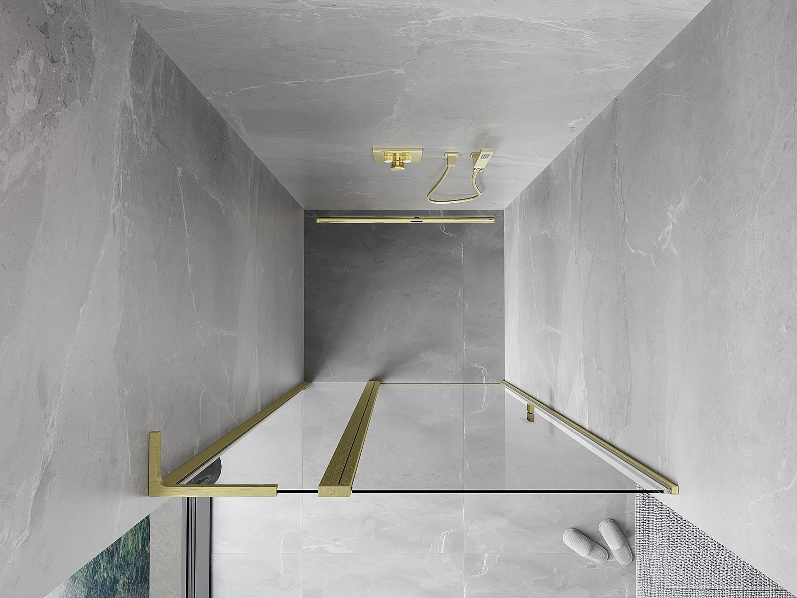 Mexen Mist L puerta de ducha abatible 100 cm, transparente, oro cepillado - 8A4L-100-000-55-00