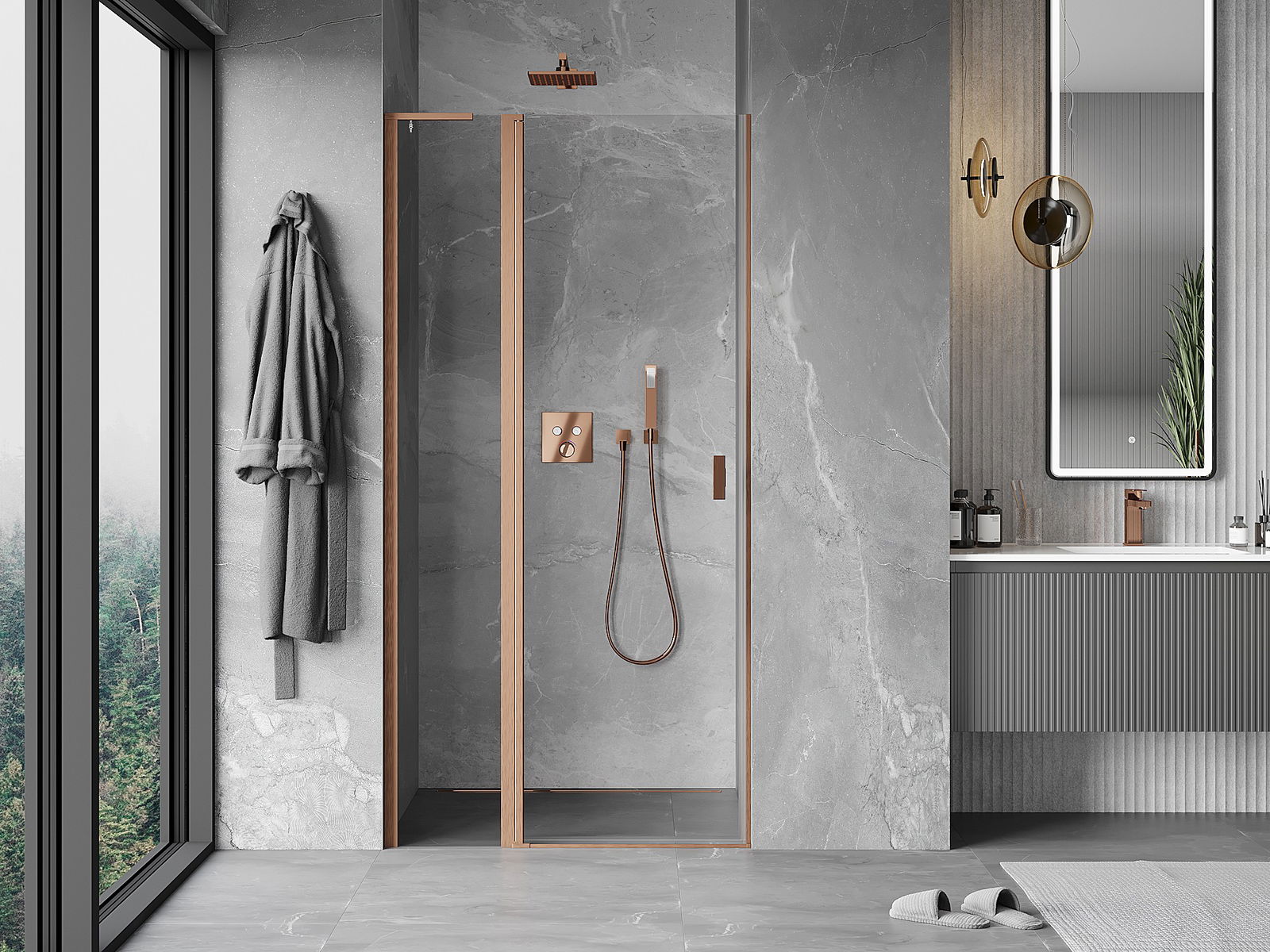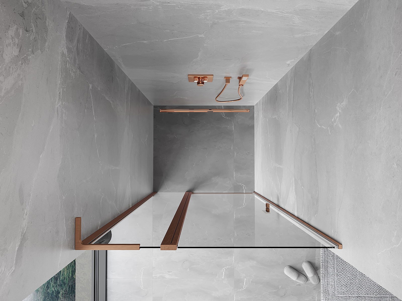 Mexen Mist L puerta de ducha abatible 100 cm, transparente, cobre cepillado - 8A4L-100-000-65-00