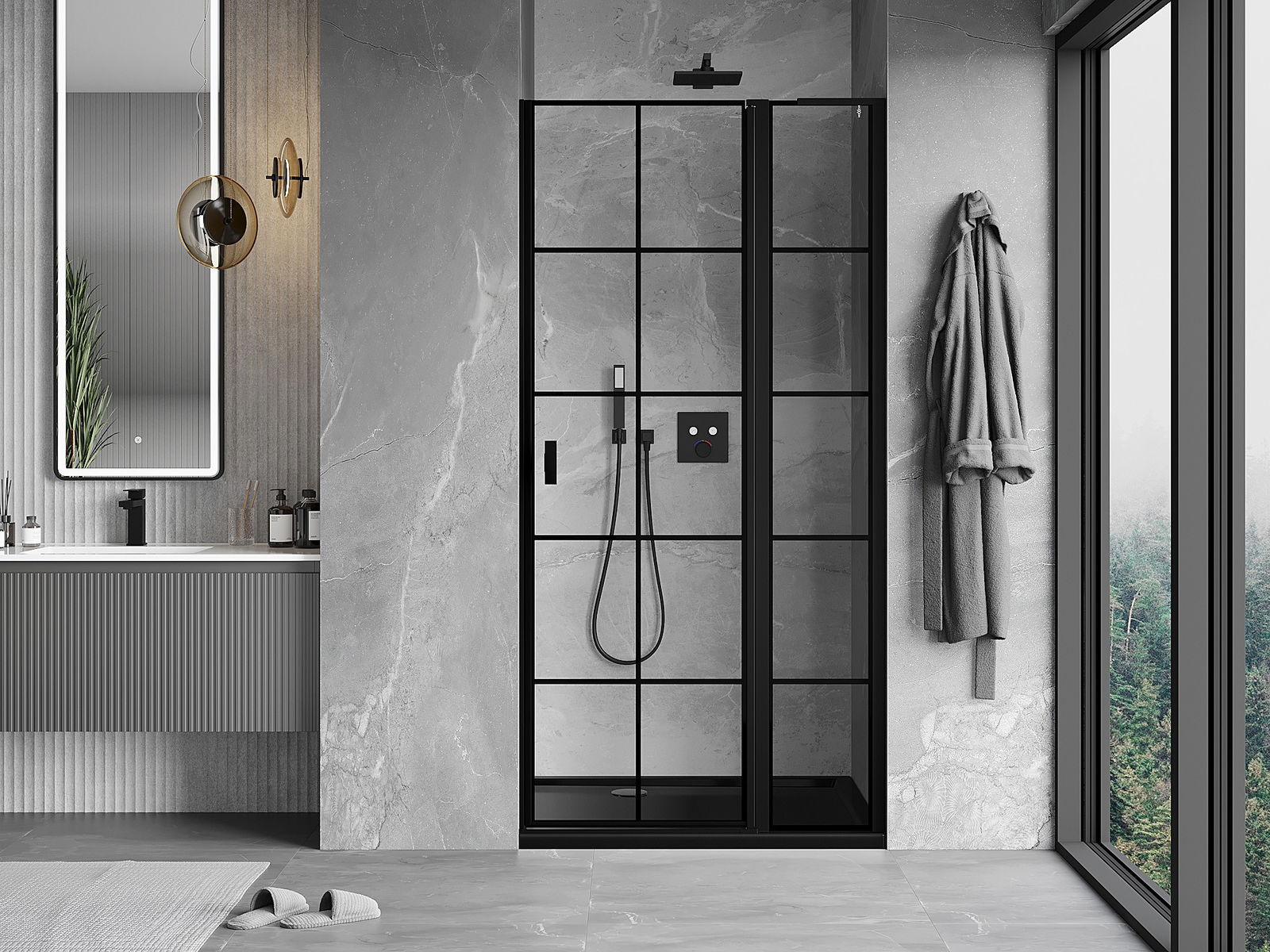 Mexen Mist L puerta de ducha abatible derecha 110 cm, rejilla negra, negro - 8A4L-110-000-70-77-P