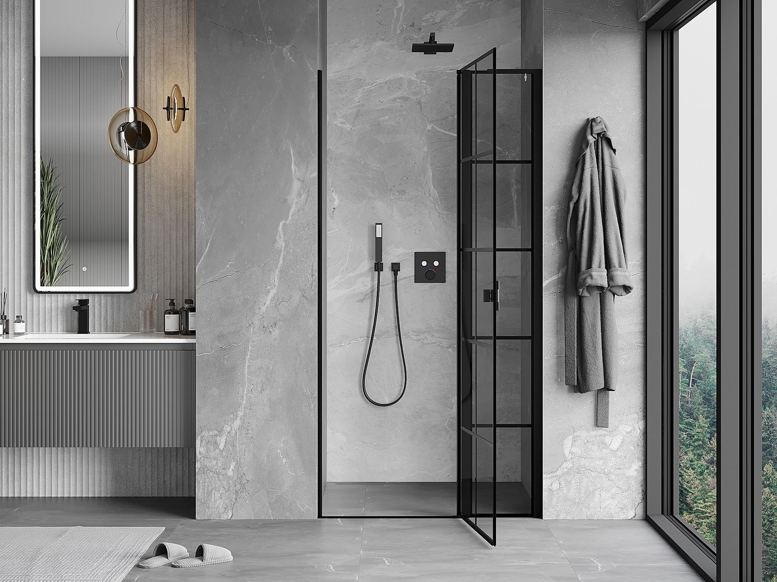 Un asa práctico y cómodo hecho de metal duradero y resistente. La forma moderna combinada con un acabado que se adapta al color de los perfiles le da a todo un aspecto moderno y estilizado, destacando la estética de cada baño.