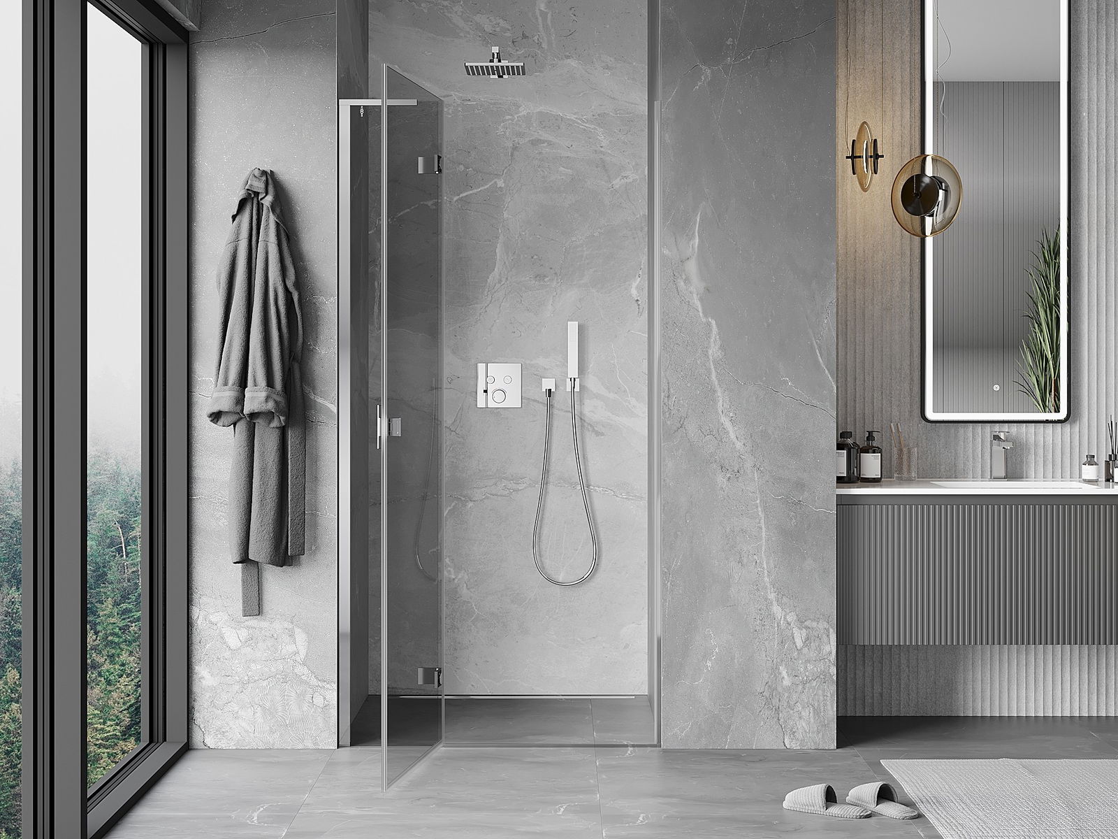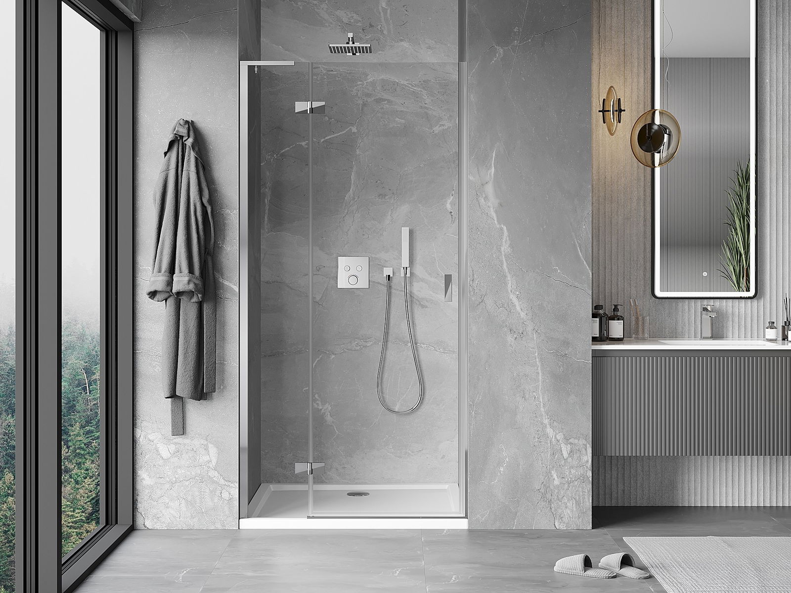 Las puertas abatibles permiten la máxima libertad durante su uso. Cuentan con bisagras sólidas hechas de un material duradero, que no presentan dificultades para mantener la limpieza y permiten un fácil acceso al interior de la cabina.