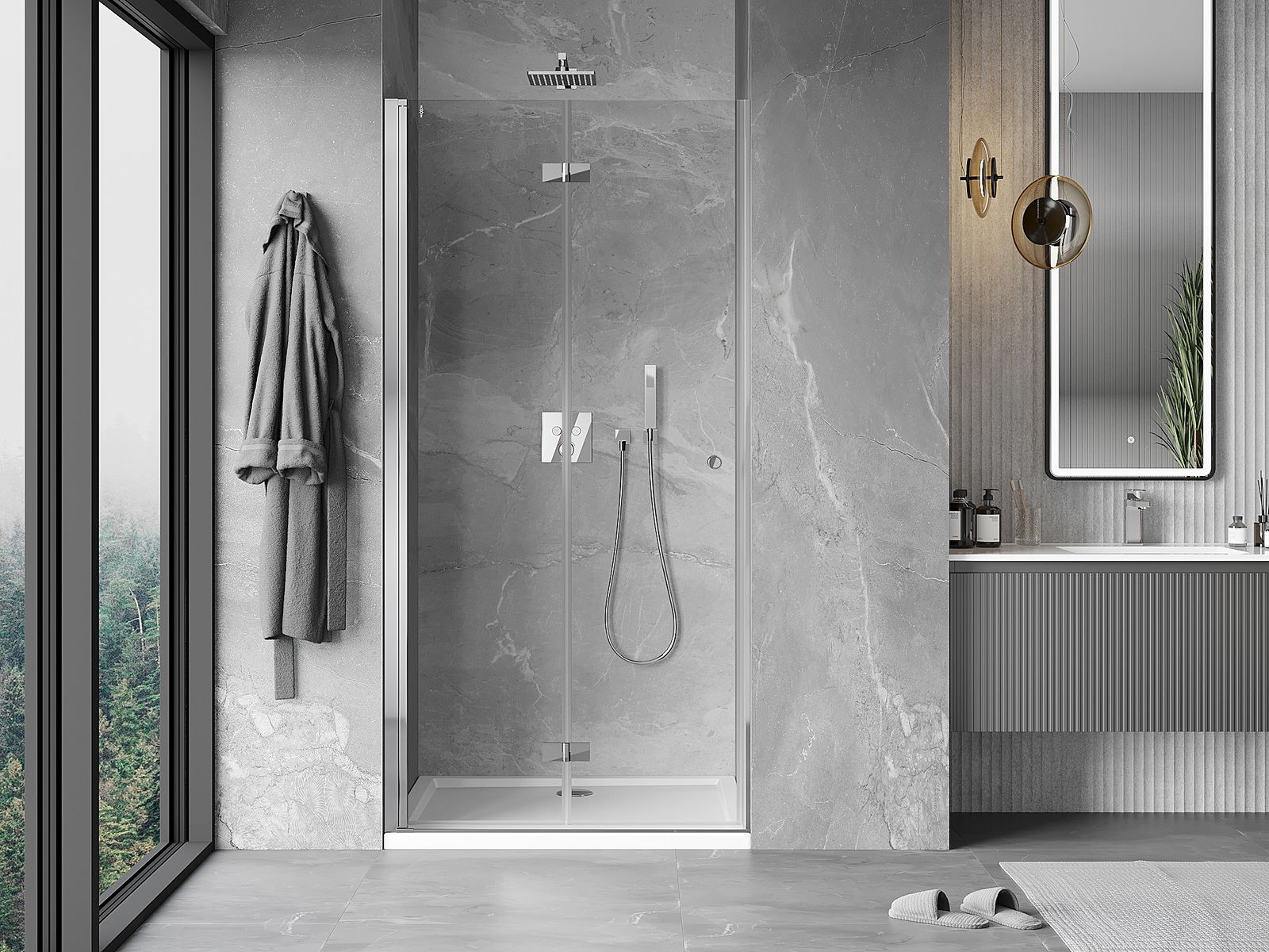 La posibilidad de plegar las puertas, tanto hacia afuera como hacia adentro, permite obtener más espacio cuando no se está utilizando la ducha. Es una solución ideal para baños más pequeños, aprovechando al máximo el espacio disponible.