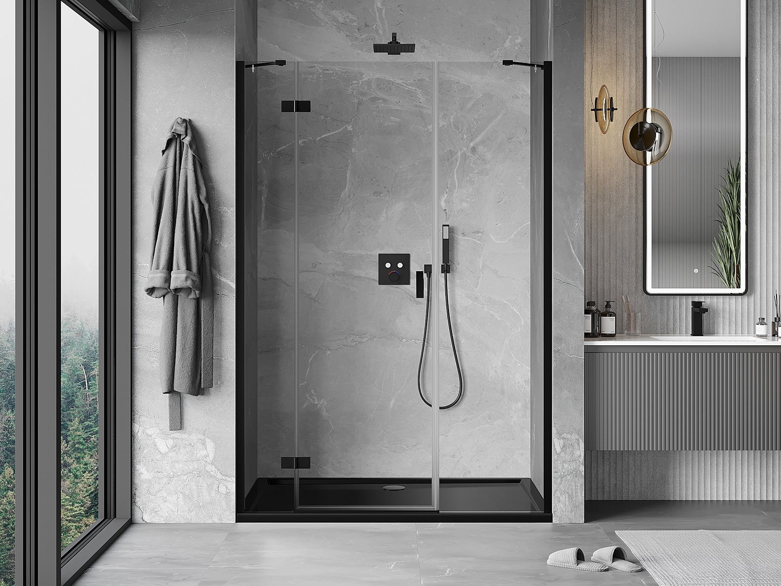 Las puertas abatibles permiten la máxima libertad durante su uso. Cuentan con bisagras sólidas hechas de un material duradero, que no presentan dificultades para mantener la limpieza y permiten un fácil acceso al interior de la cabina.
