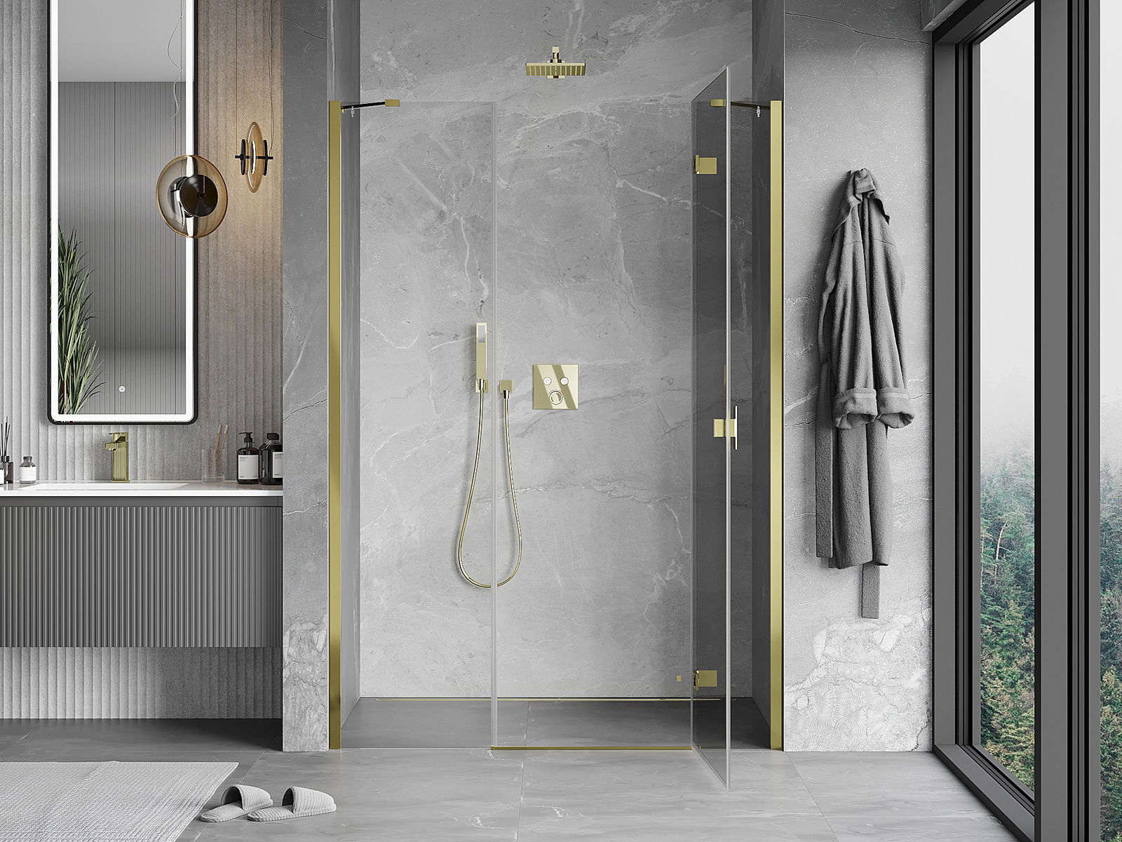 Las puertas abatibles permiten la máxima libertad durante su uso. Cuentan con bisagras sólidas hechas de un material duradero, que no presentan dificultades para mantener la limpieza y permiten un fácil acceso al interior de la cabina.