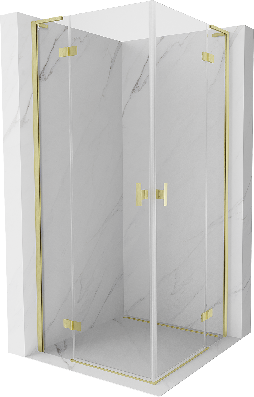 Mexen Mist-H L Duo cabina de ducha abatible 75 x 75 cm, transparente, oro cepillado - 8A5L-075L-075P-55-00