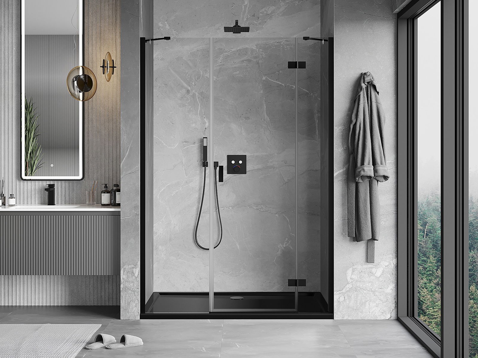 Mexen Rio cabina de ducha cuadrada 90 x 90 cm, transparente, negra - 860-090-090-70-00