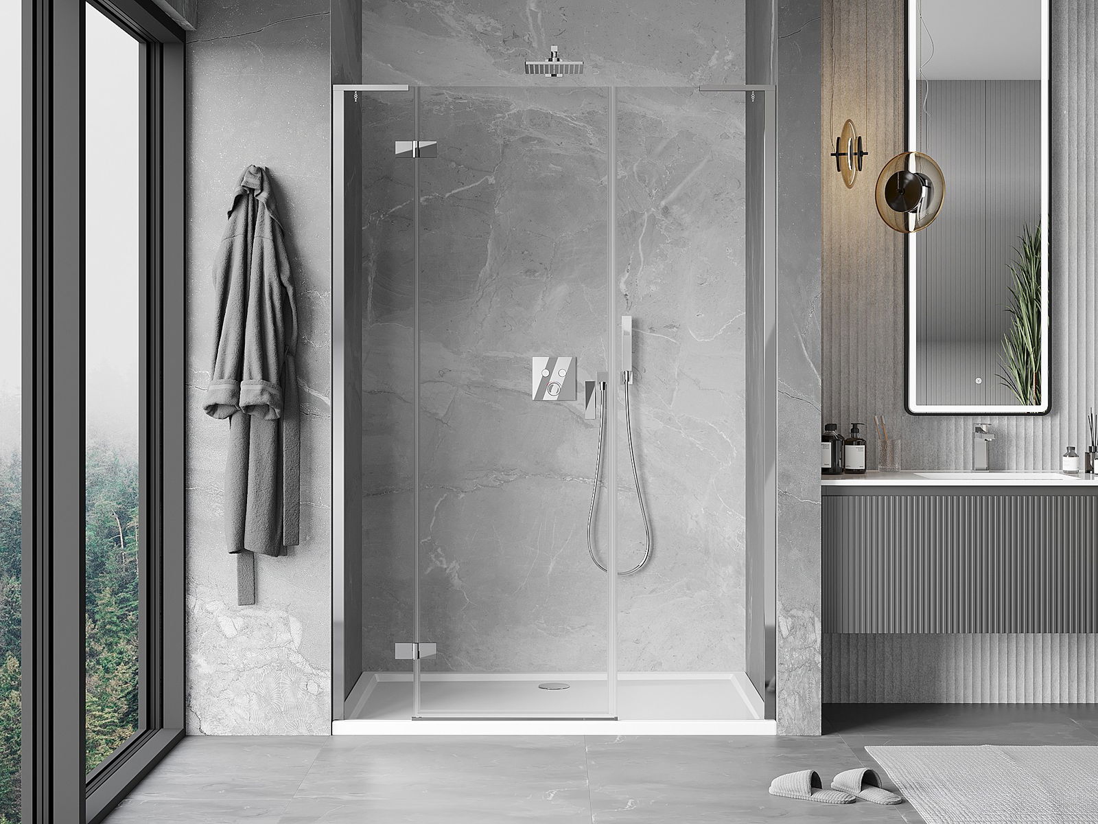 Las puertas abatibles permiten la máxima libertad durante su uso. Cuentan con bisagras sólidas hechas de un material duradero, que no presentan dificultades para mantener la limpieza y permiten un fácil acceso al interior de la cabina.