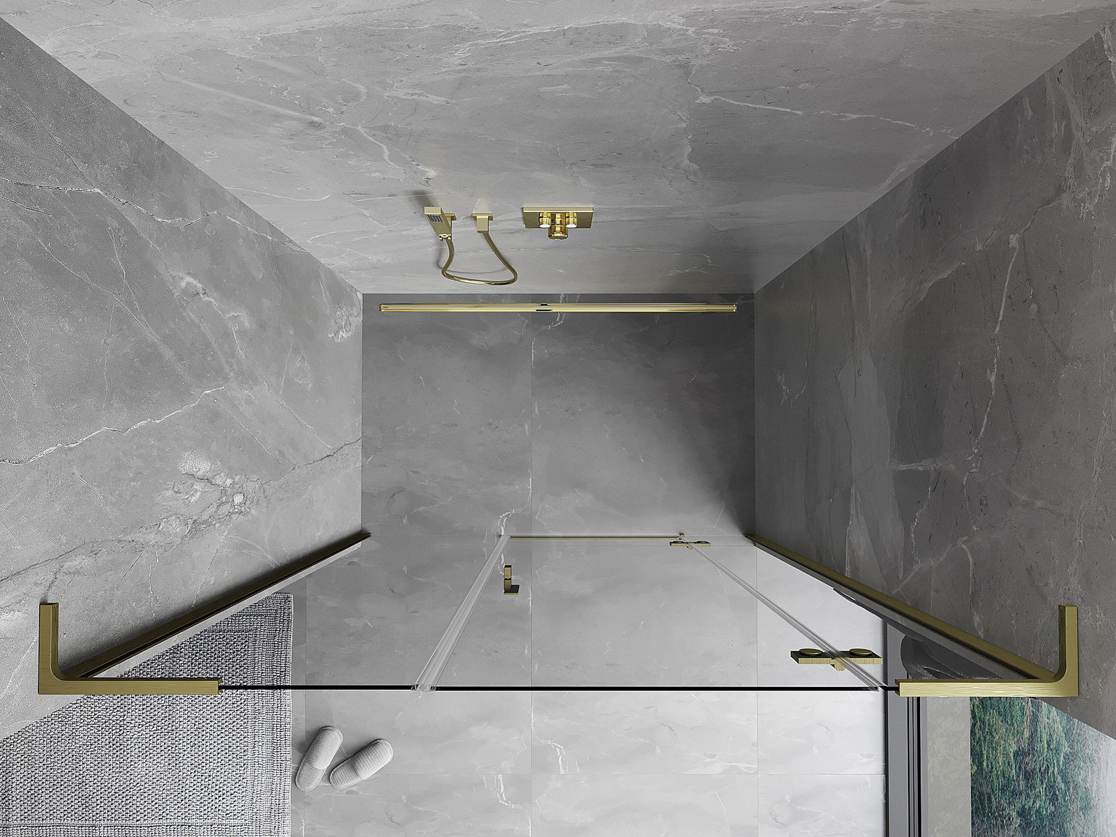 Mexen Mist-H L puerta de ducha abatible derecha 130 cm, transparente, dorado cepillado - 8A5L-130-001-55-00-P