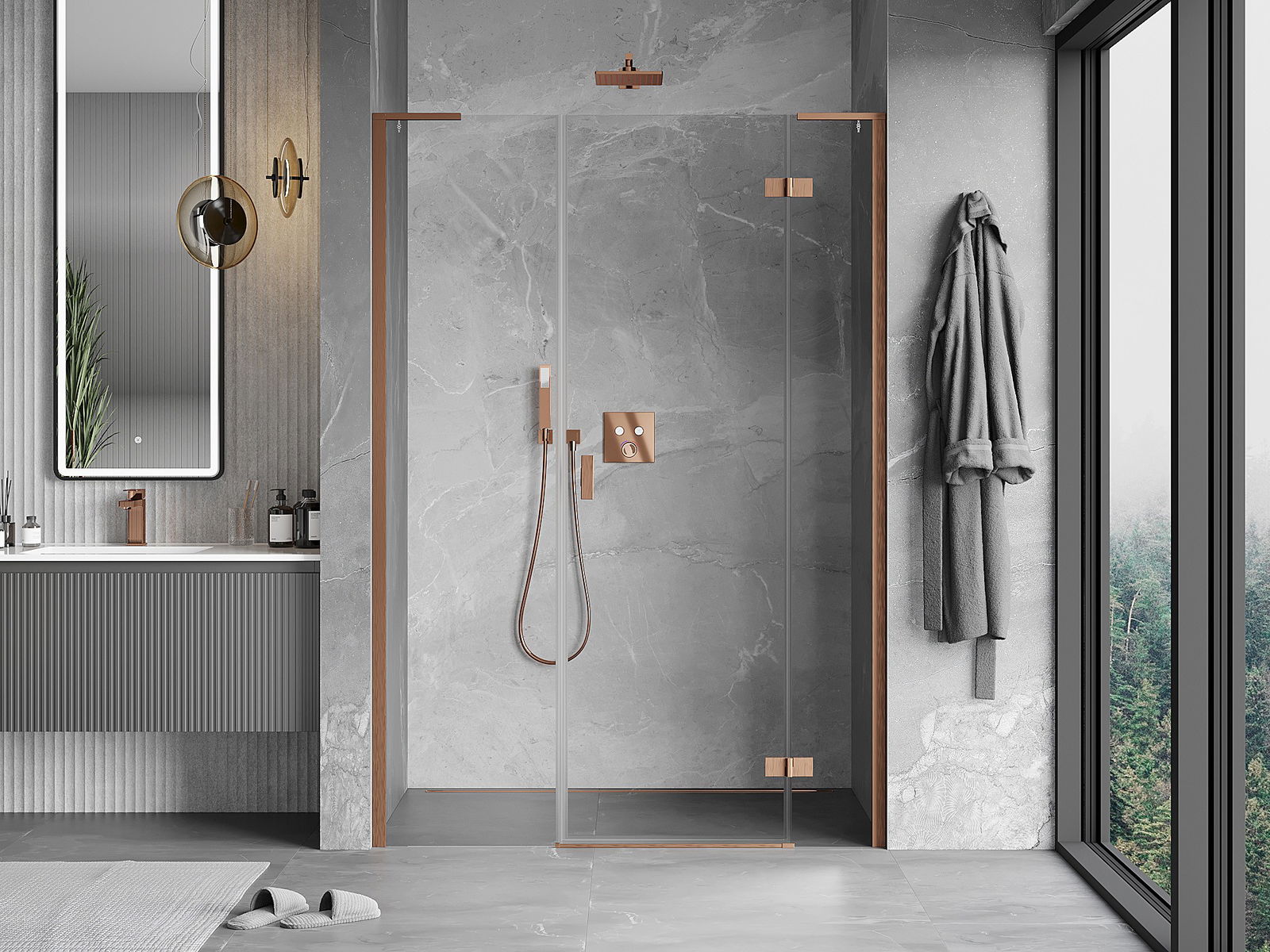Mexen Mist-H L puerta de ducha batiente derecha 160 cm, transparente, cobre cepillado - 8A5L-160-001-65-00-P