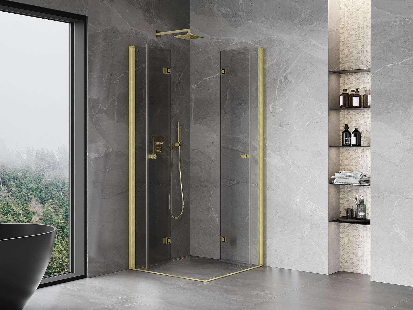 Mexen Mist-F Duo cabina de ducha plegable 90 x 90 cm, transparente, dorado cepillado - 8A6-090L-090P-55-00