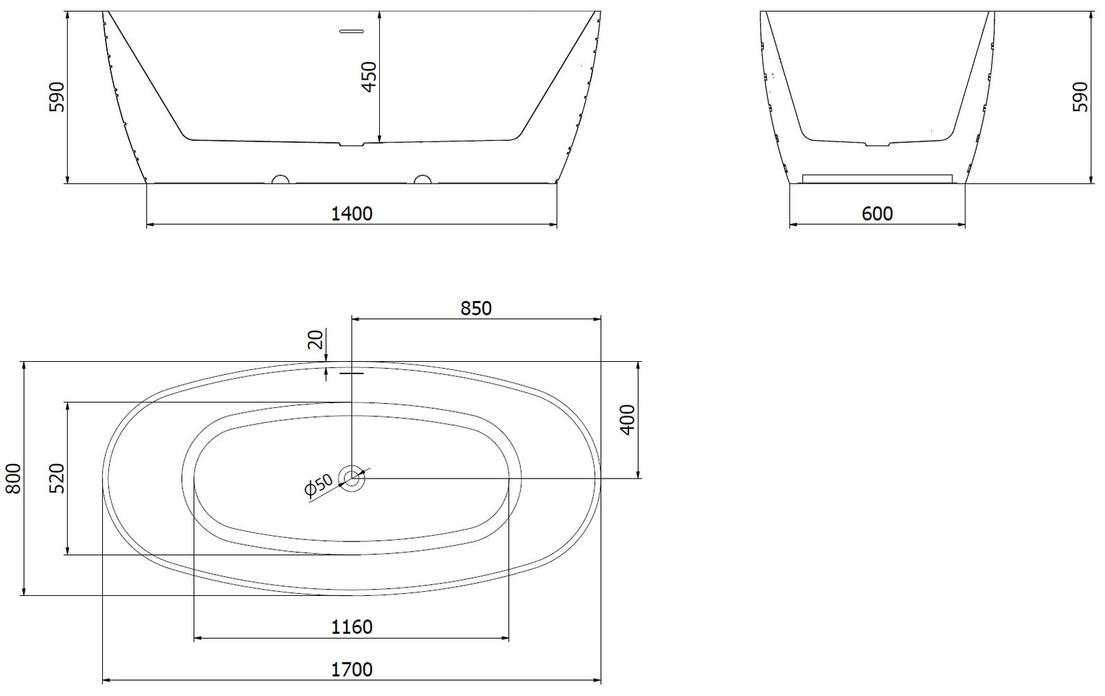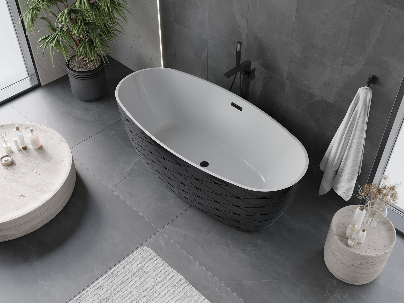 Es un material moderno que combina una apariencia elegante con alta durabilidad. Es resistente a daños mecánicos, fácil de limpiar y agradable al tacto. La forma transparente y el borde fino de la bañera le dan ligereza y un carácter único, creando un acento impresionante en el diseño del baño.