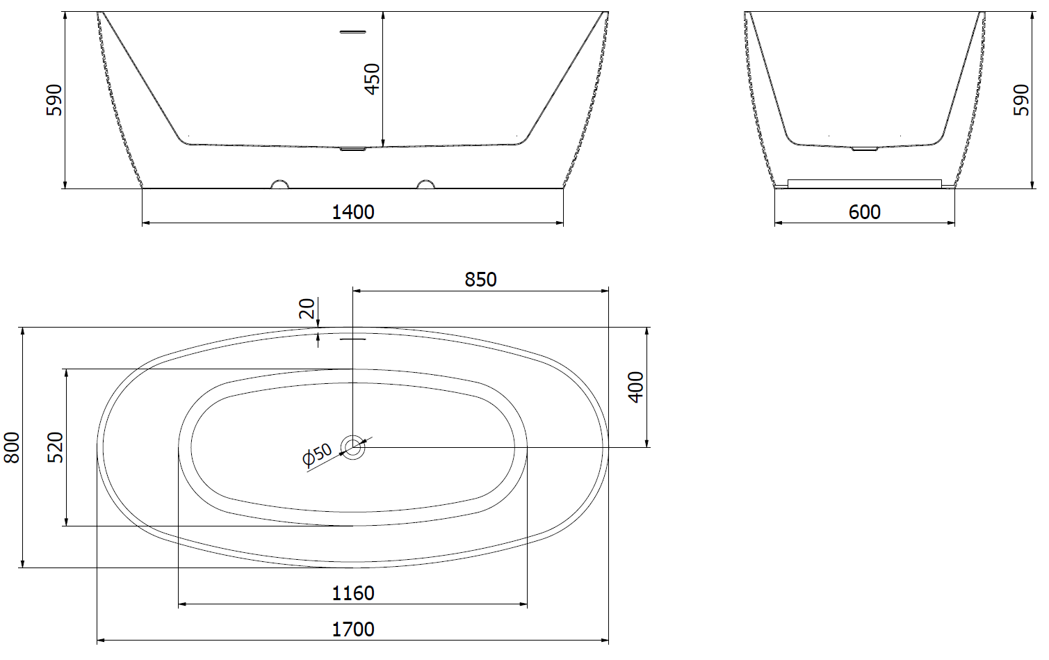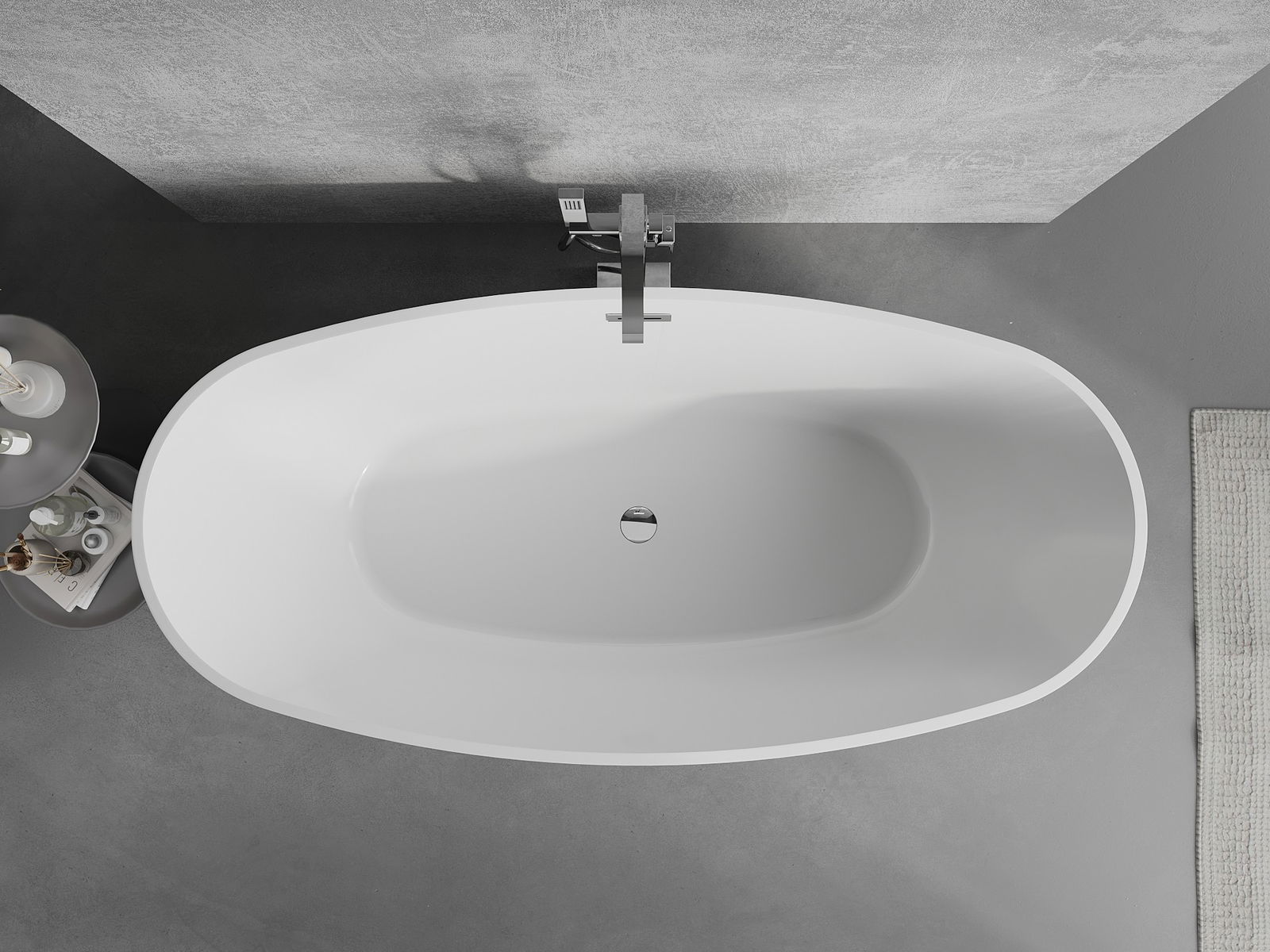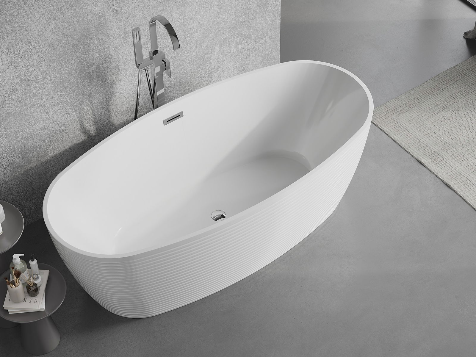Es un material moderno que combina una apariencia elegante con alta durabilidad. Es resistente a daños mecánicos, fácil de limpiar y agradable al tacto. La forma transparente y el borde fino de la bañera le dan ligereza y un carácter único, creando un acento impresionante en el diseño del baño.