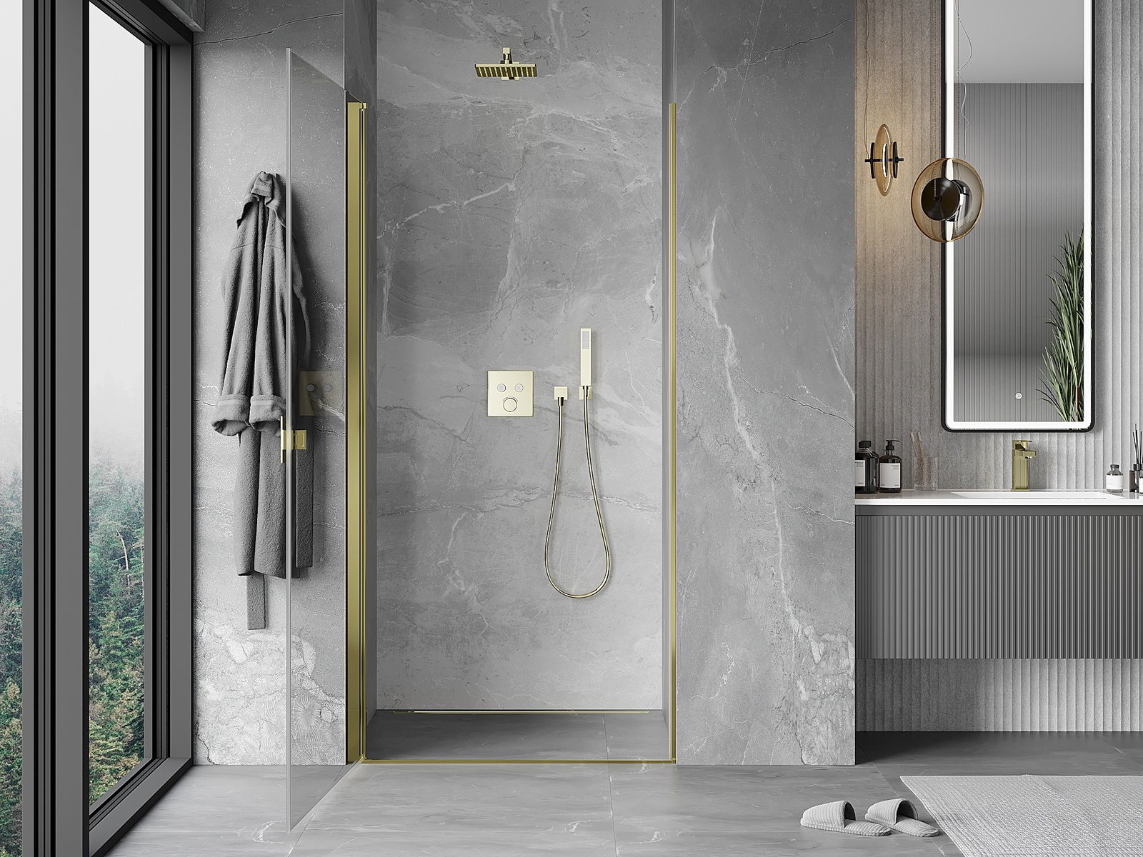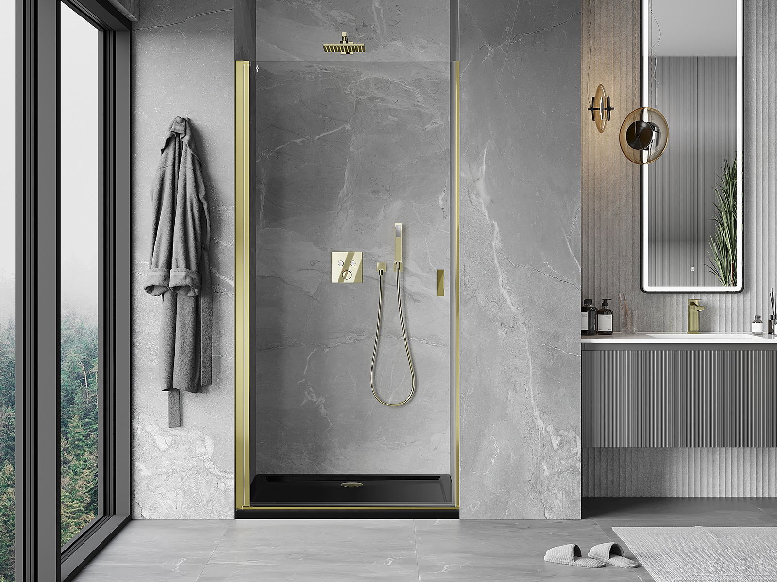 Las puertas abatibles permiten la máxima libertad durante su uso. Cuentan con bisagras sólidas hechas de un material duradero, que no presentan dificultades para mantener la limpieza y permiten un fácil acceso al interior de la cabina.