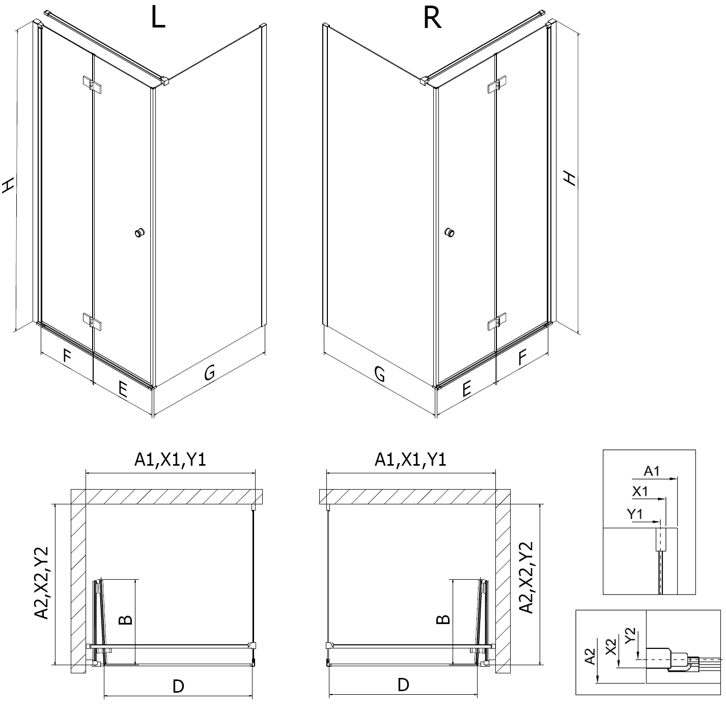 Las mamparas, puertas y paneles de ducha están adaptados de serie para su instalación en platos de ducha de dimensiones específicas. Estas dimensiones se indican en el nombre o la descripción del producto. No obstante, debe tenerse en cuenta que las dimensiones reales de los elementos pueden diferir ligeramente de los valores nominales. En caso de montaje directo sobre el suelo, se recomienda comprobar detenidamente las dimensiones exteriores y la disposición de los elementos de acuerdo con el dibujo técnico.
