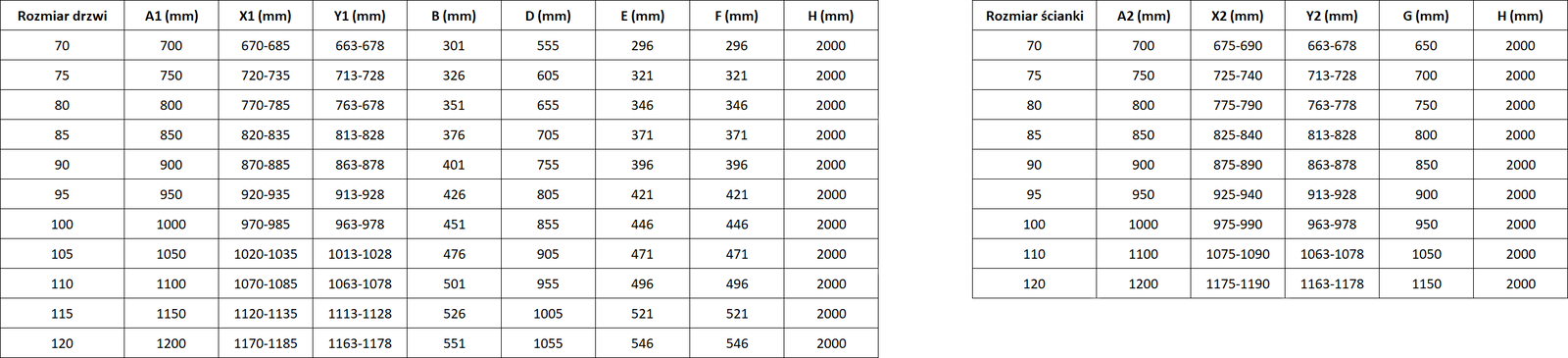 Tamaño: 110x120 cm (puerta derecha 110 cm, panel 120 cm)