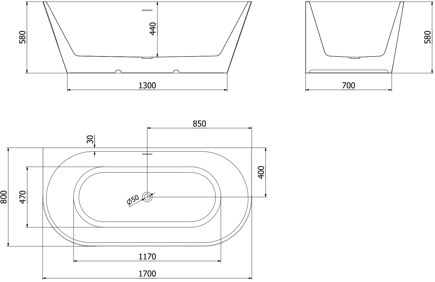 Mexen Oris bañera exenta con relieve para pared 170 x 80 cm, blanca/negra, rebosadero níquel cepillado - 52871708075-97