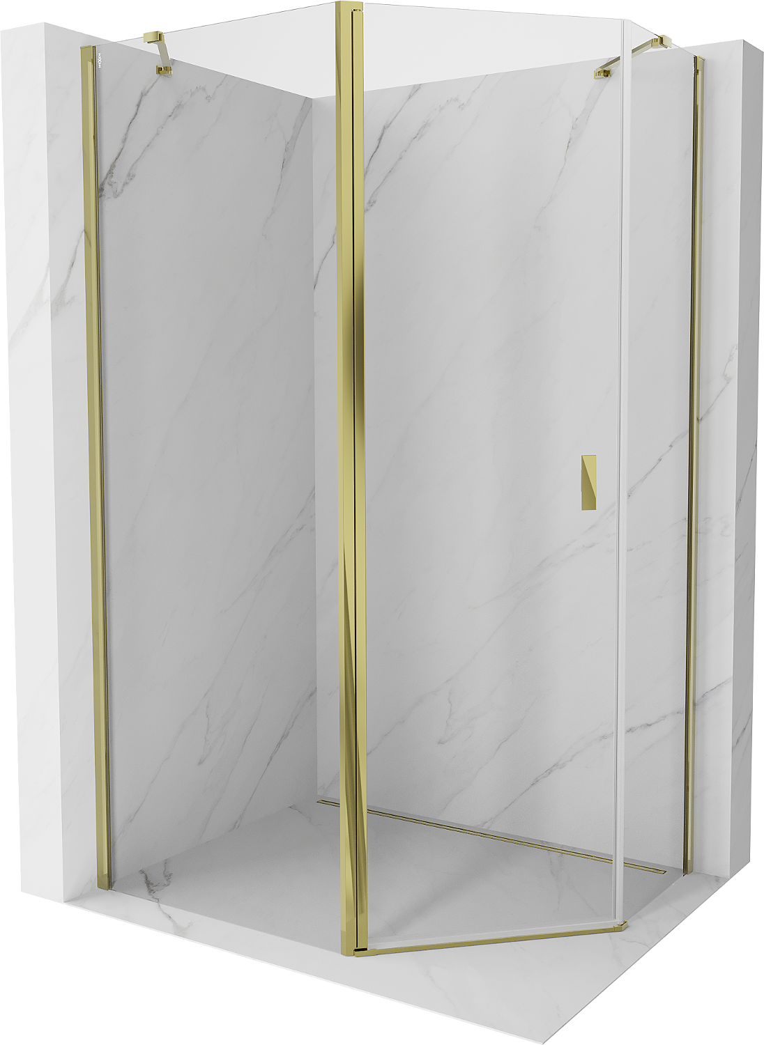 Mexen Mist cabina de ducha pentagonal asimétrica abatible 100 x 80 cm, transparente, dorada - 8A8-100-080-50-00
