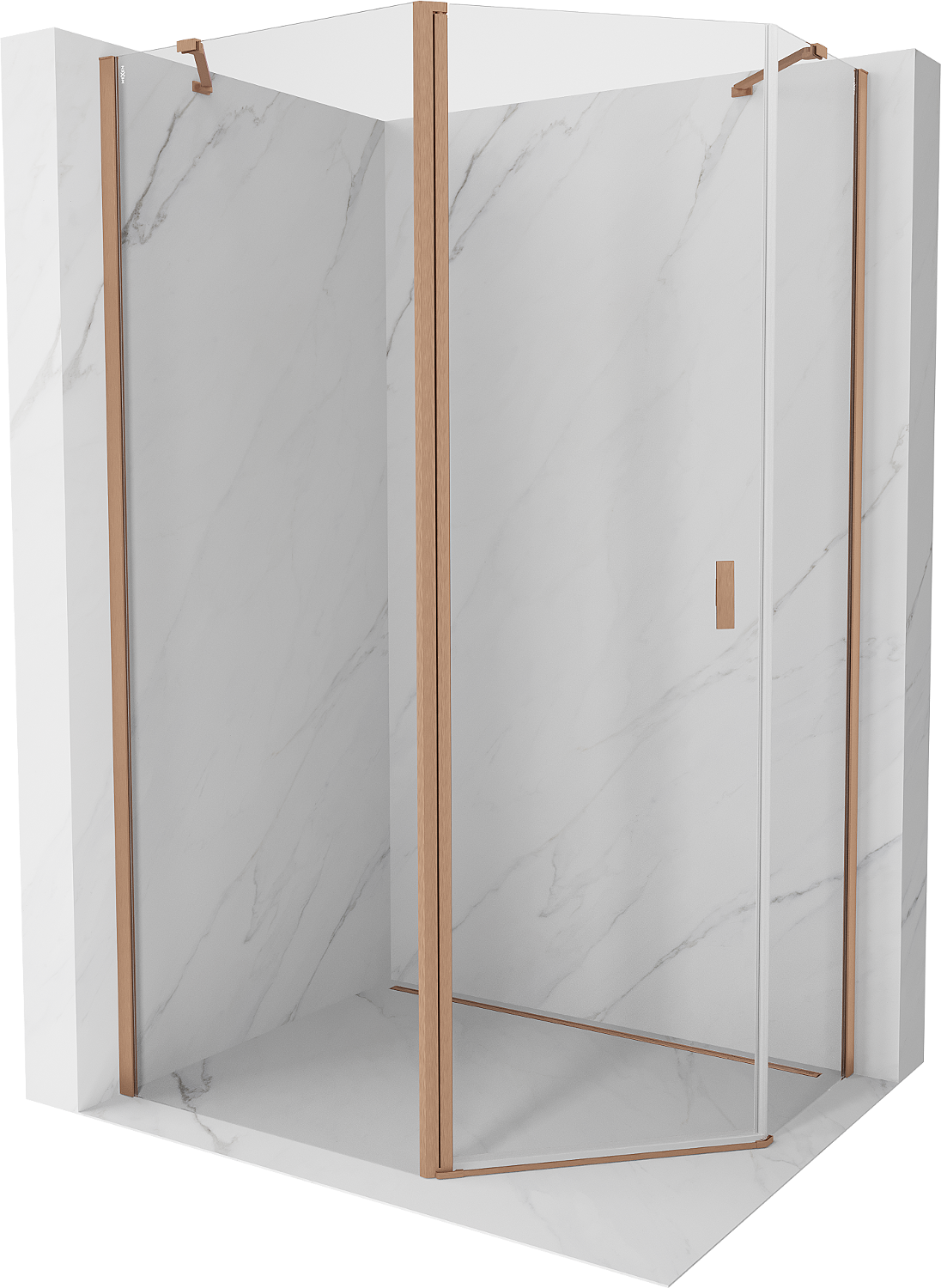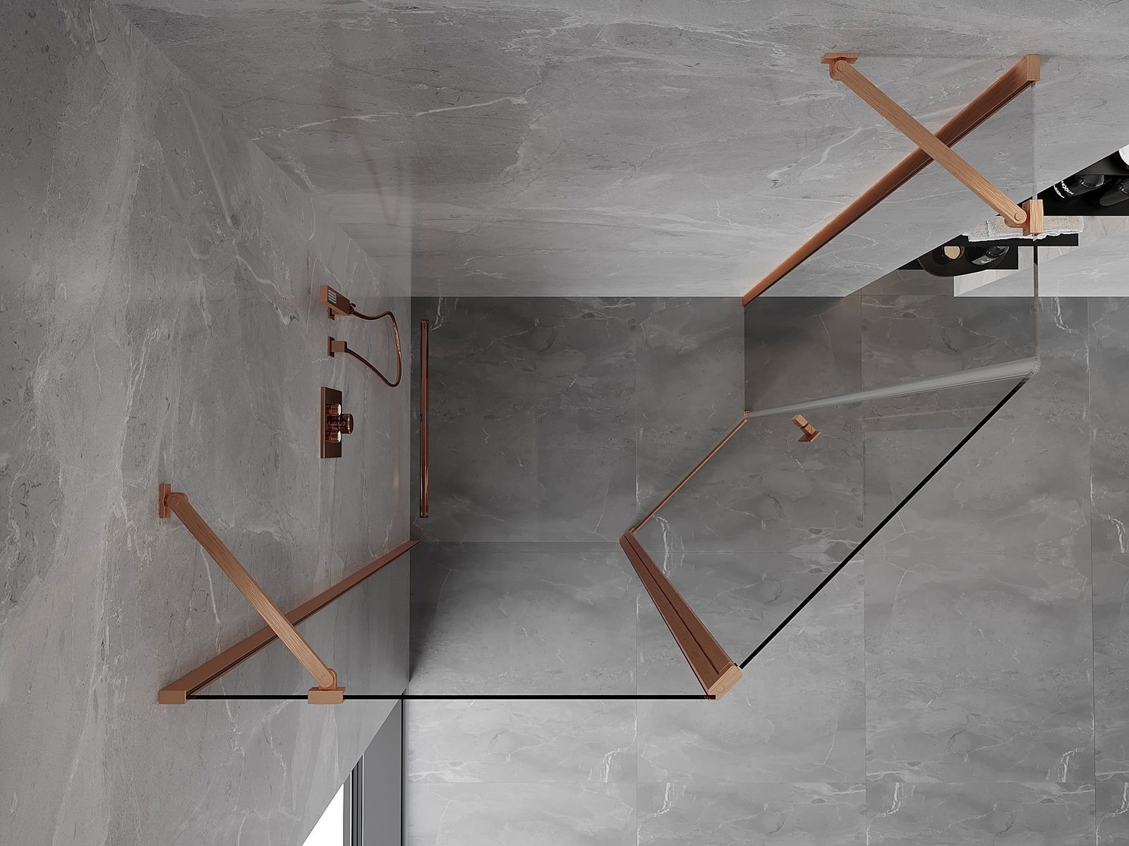 Mexen Mist cabina de ducha pentagonal asimétrica abatible 90 x 80 cm, transparente, cobre cepillado - 8A8-090-080-65-00