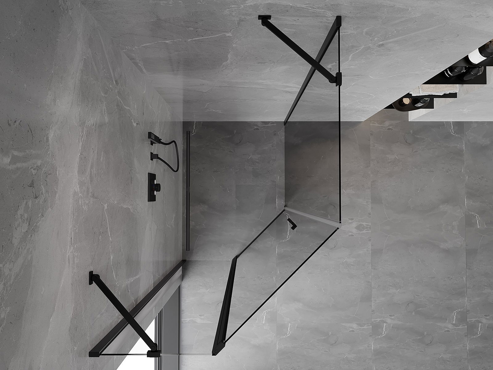 Mexen Mist cabina de ducha pentagonal asimétrica abatible 90 x 100 cm, transparente, negro - 8A8-090-100-70-00