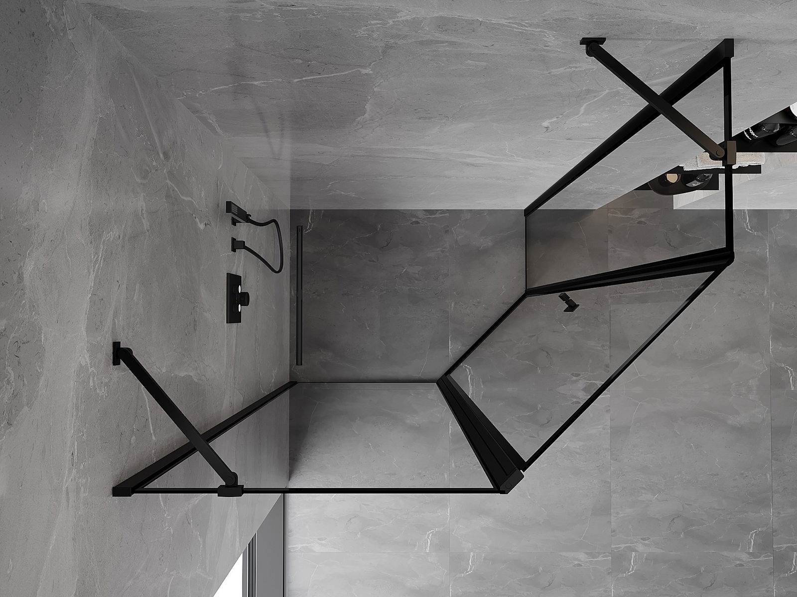 Mexen Mist cabina de ducha pentagonal asimétrica abatible izquierda 100 x 90 cm, marco negro, negro - 8A8-100-090-70-70-L