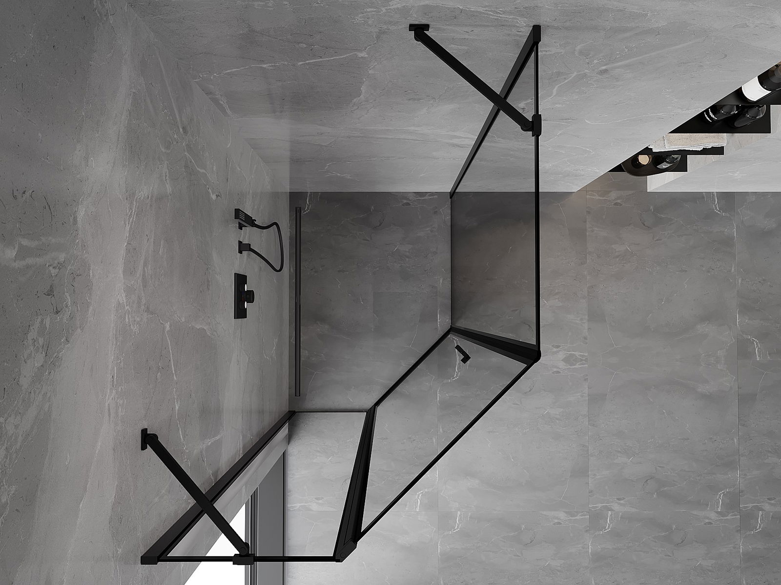 Mexen Mist cabina de ducha pentagonal asimétrica abatible izquierda 90 x 100 cm, marco negro, negro - 8A8-090-100-70-70-L