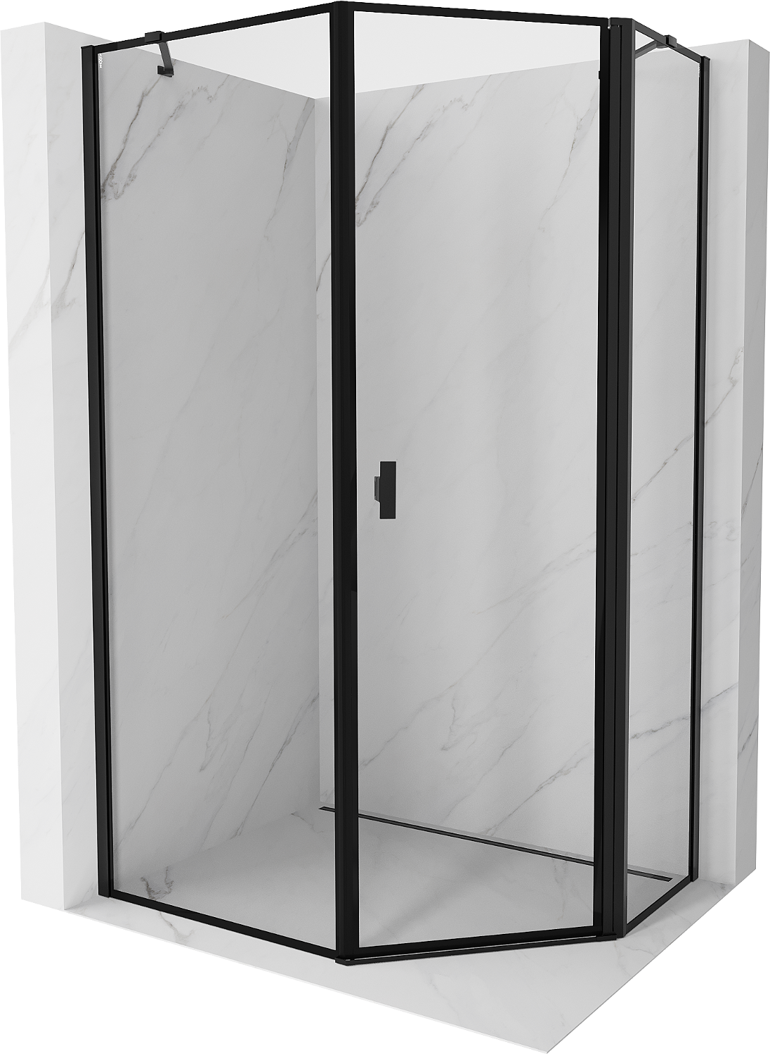 Mexen Mist cabina de ducha pentagonal asimétrica con bisagra derecha 90 x 100 cm, marco negro, negro - 8A8-090-100-70-70-P