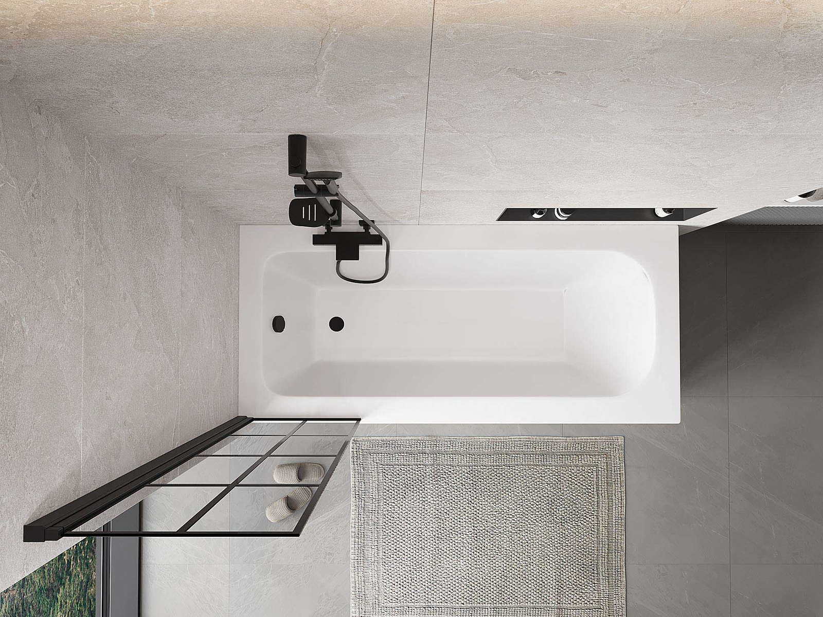 Protección efectiva contra el derrame de agua durante el baño. La mampara tiene juntas que se ajustan perfectamente a la superficie del vidrio y al borde de la bañera. Solución funcional que garantiza seguridad y facilidad de limpieza.
