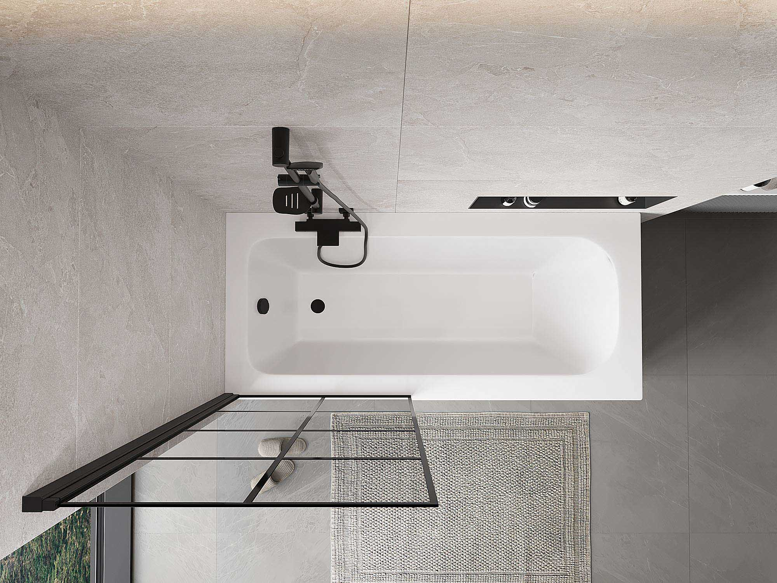 Protección efectiva contra el derrame de agua durante el baño. La mampara tiene juntas que se ajustan perfectamente a la superficie del vidrio y al borde de la bañera. Solución funcional que garantiza seguridad y facilidad de limpieza.