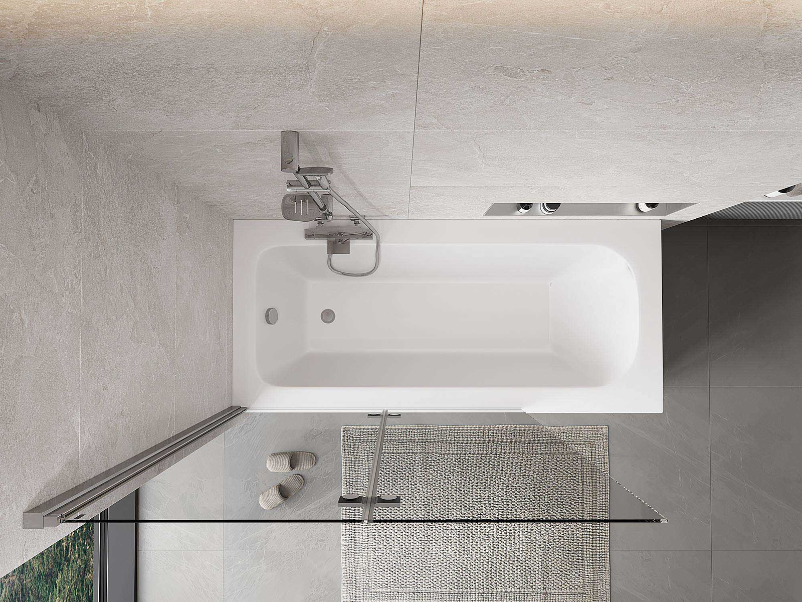 Protección efectiva contra el derrame de agua durante el baño. La mampara tiene juntas que se ajustan perfectamente a la superficie del vidrio y al borde de la bañera. Solución funcional que garantiza seguridad y facilidad de limpieza.