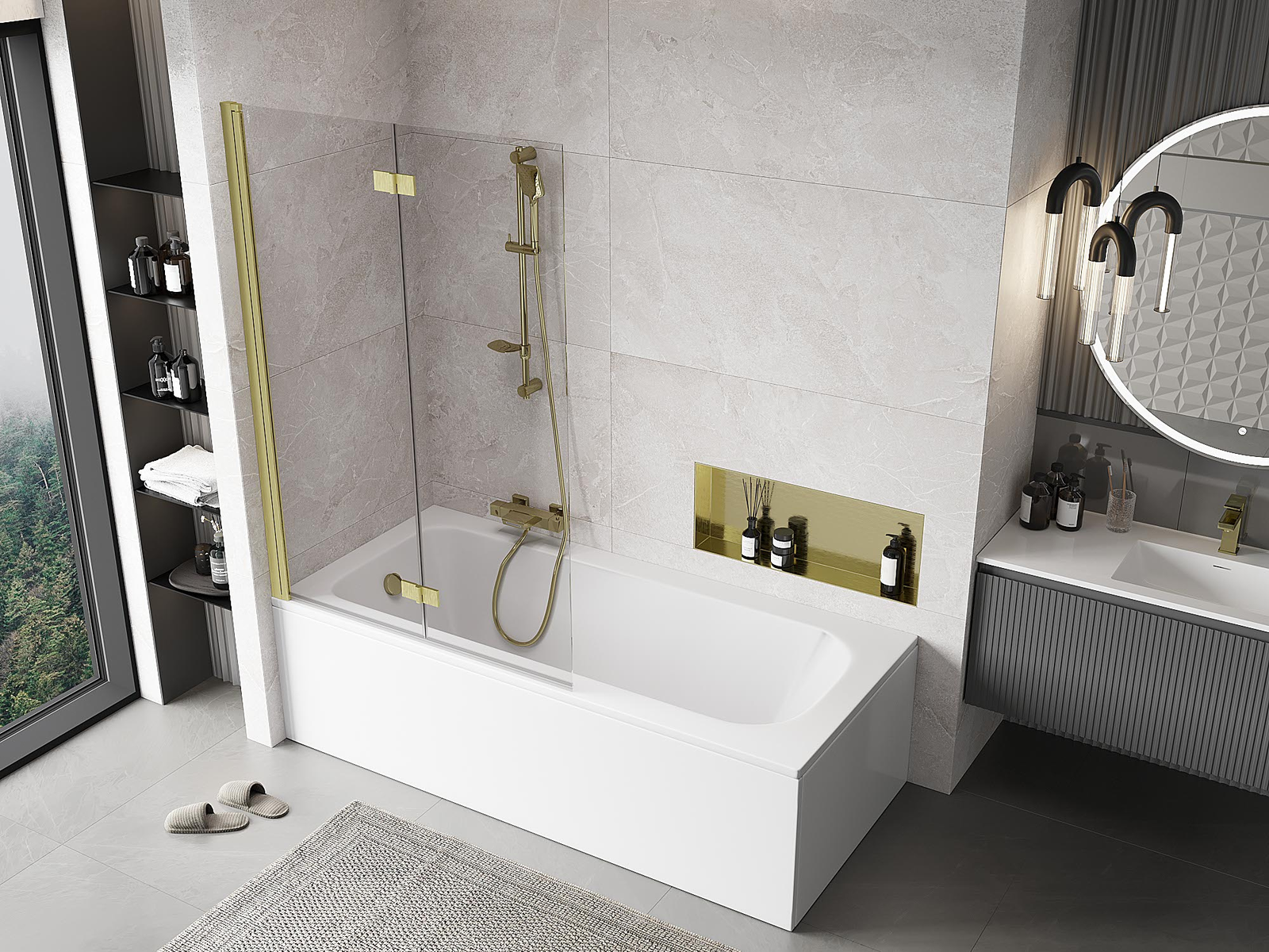 Protección efectiva contra el derrame de agua durante el baño. La mampara tiene juntas que se ajustan perfectamente a la superficie del vidrio y al borde de la bañera. Solución funcional que garantiza seguridad y facilidad de limpieza.