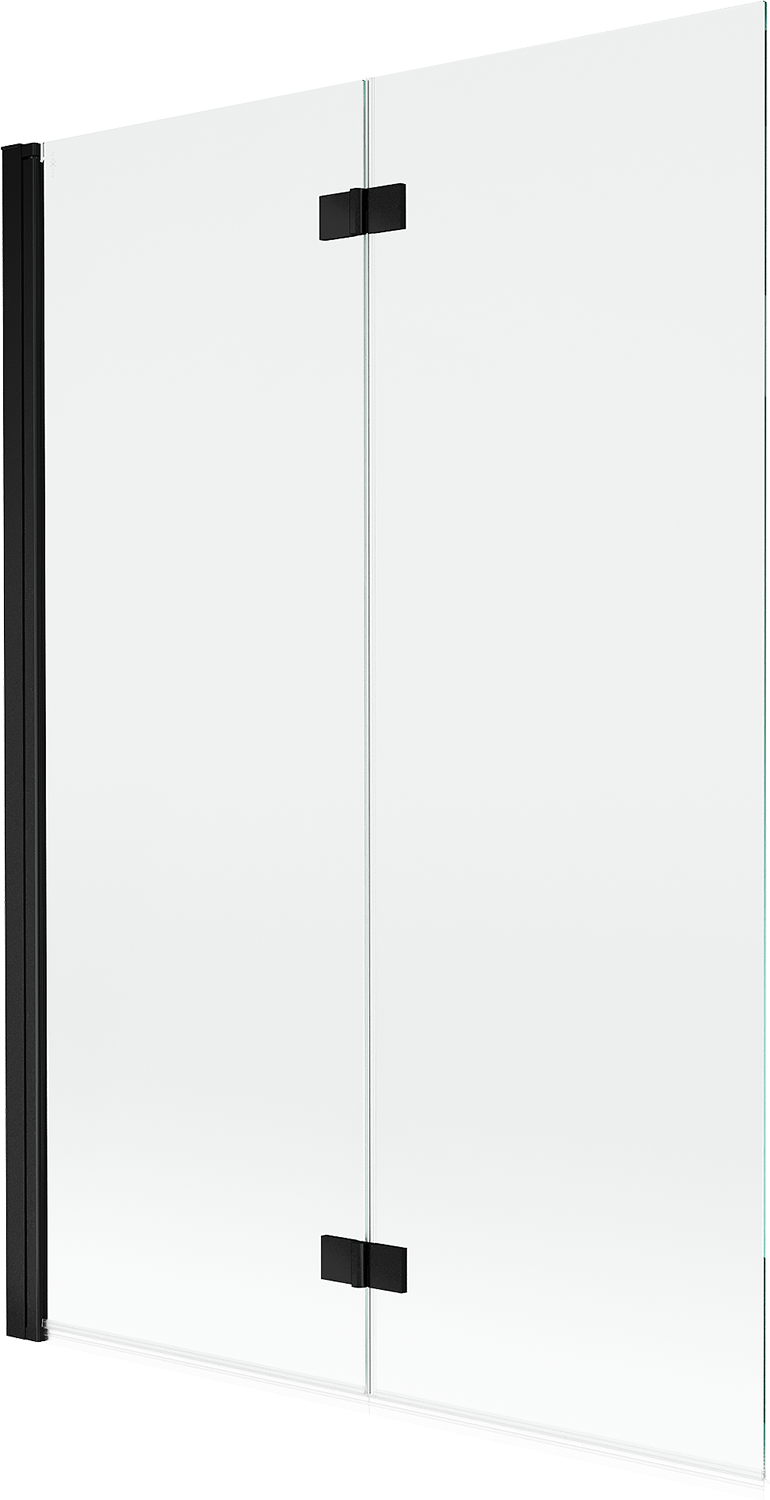 Paraván hecho de dos hojas con posibilidad de plegado. Esta solución permite ahorrar más espacio en el baño y permite el uso libre del espacio restante cuando no estamos usando la zona de baño.