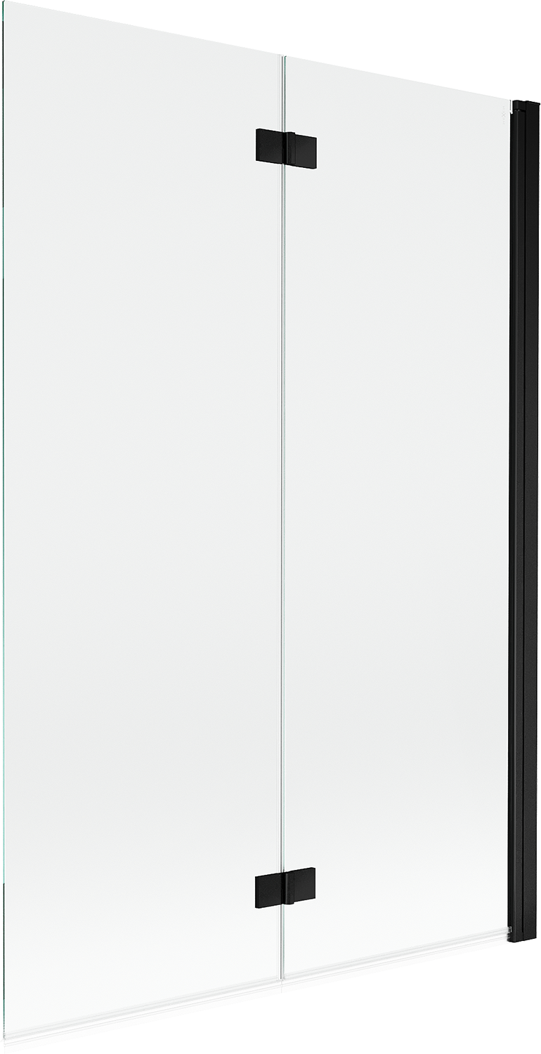 Paraván hecho de dos hojas con posibilidad de plegado. Esta solución permite ahorrar más espacio en el baño y permite el uso libre del espacio restante cuando no estamos usando la zona de baño.
