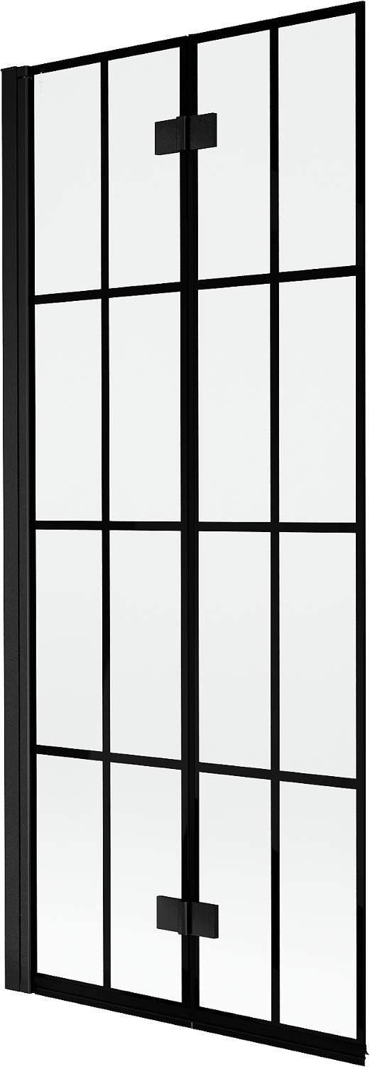 Paraván hecho de dos hojas con posibilidad de plegado. Esta solución permite ahorrar más espacio en el baño y permite el uso libre del espacio restante cuando no estamos usando la zona de baño.